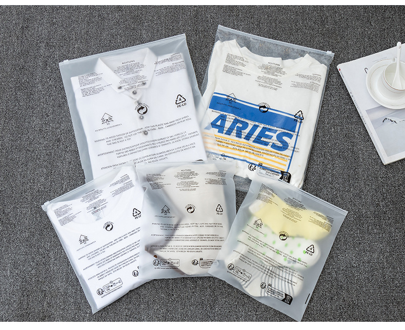 PE 젖빛 투명 경고 지퍼 가방 두꺼운 옷 포장 자체 밀봉 가방 유니버설 밀봉 포장 가방 도매스토어 가기