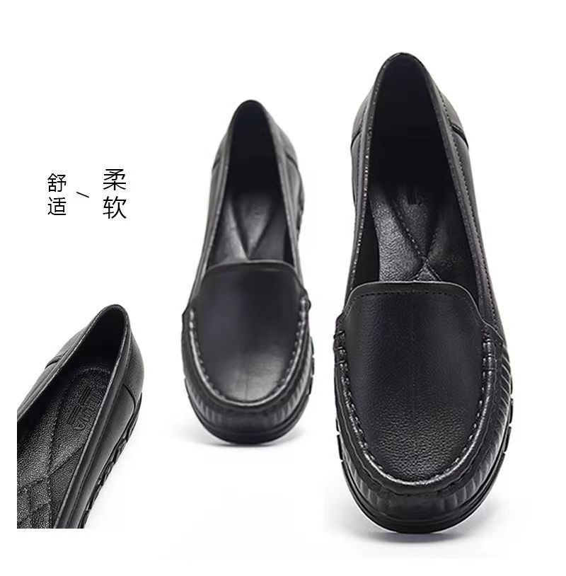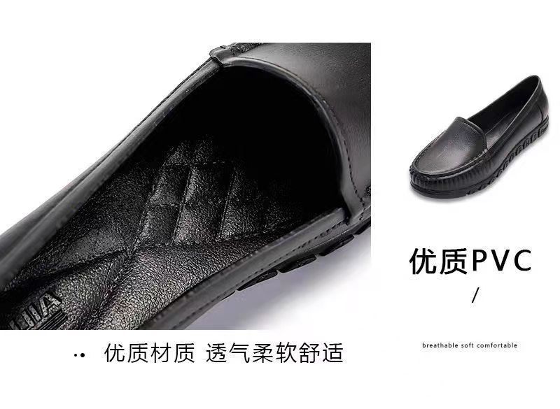 봄과 가을 비 부츠 여성용 로우 탑 캐주얼 방수 미끄럼 방지 워터 슈즈 여성용 주방 모조 가죽 고무 신발 어머니 플랫 슈즈