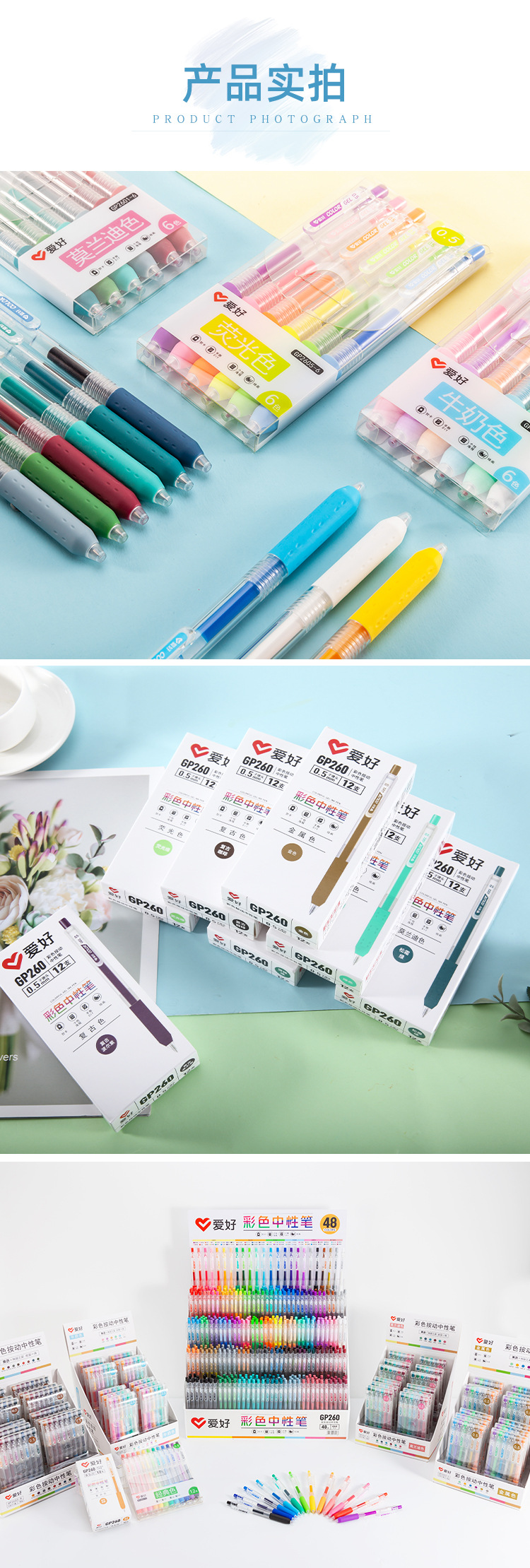 취미 GP260 컬러 프레스 젤 펜 48 컬러 DIY 핸드 계정 컬러 펜 초등학교 노트 마킹 키 펜스토어 가기
