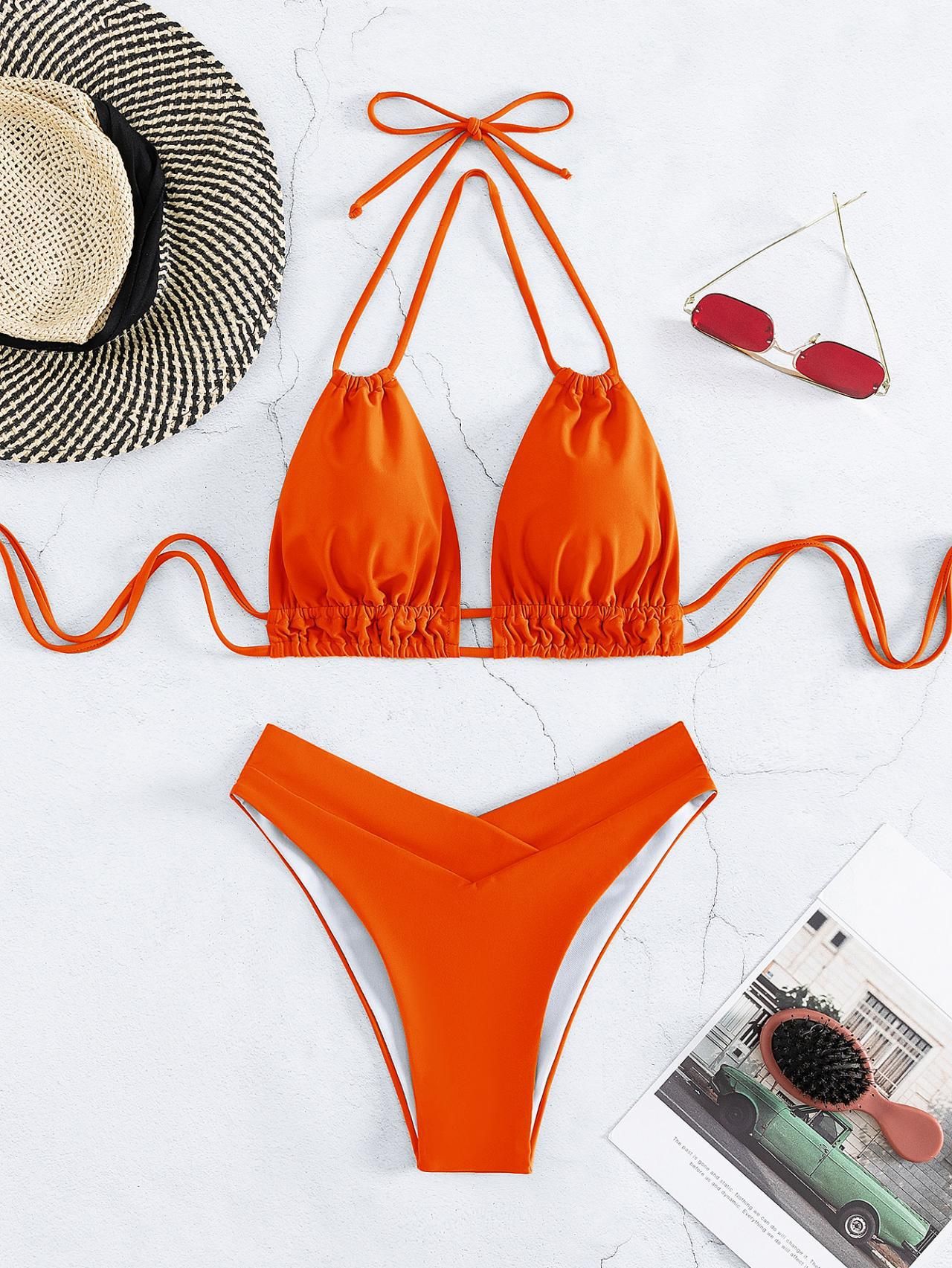 2024 새로운 섹시한 비키니 패션 여성 분할 수영복 높은 탄성 단색 유럽과 미국 수영복 도매 비키니