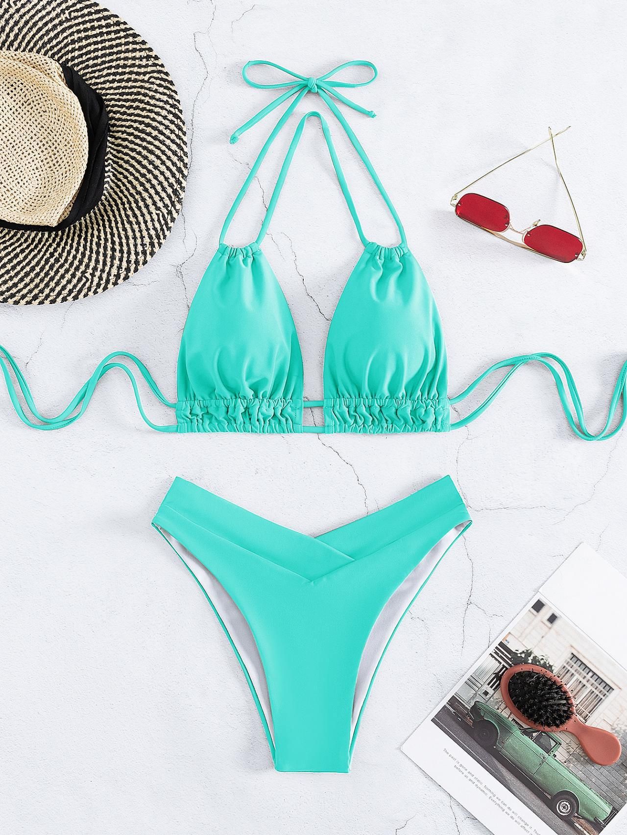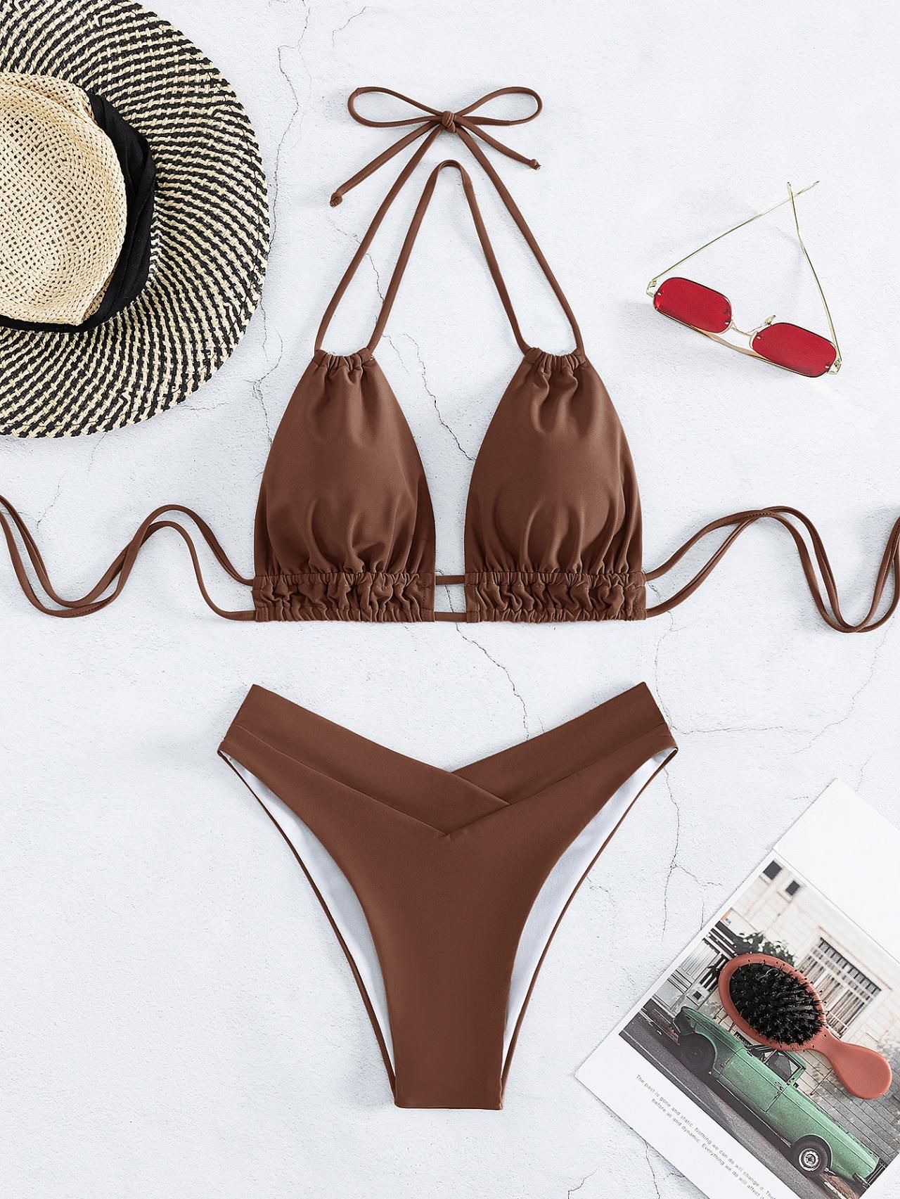 2024 새로운 섹시한 비키니 패션 여성 분할 수영복 높은 탄성 단색 유럽과 미국 수영복 도매 비키니스토어 가기