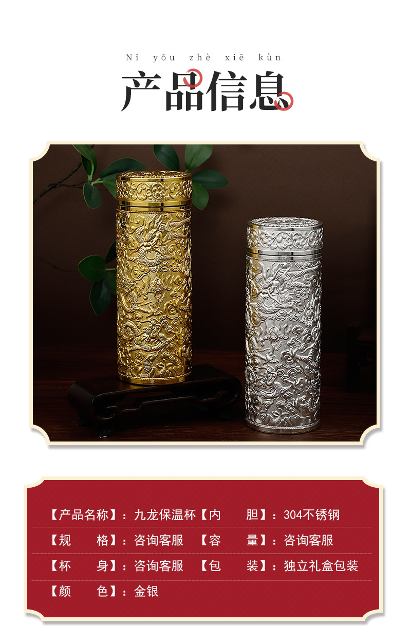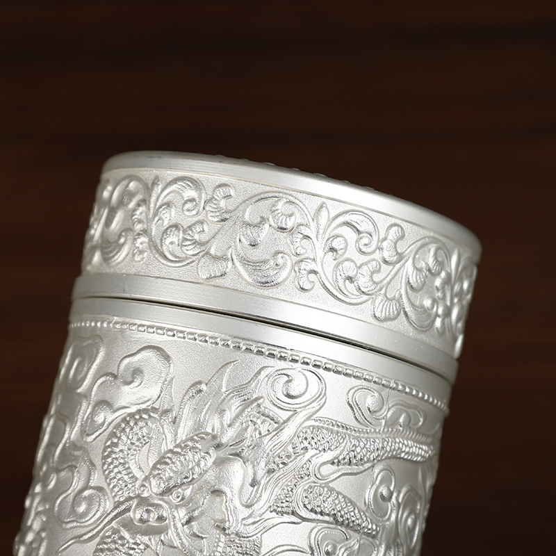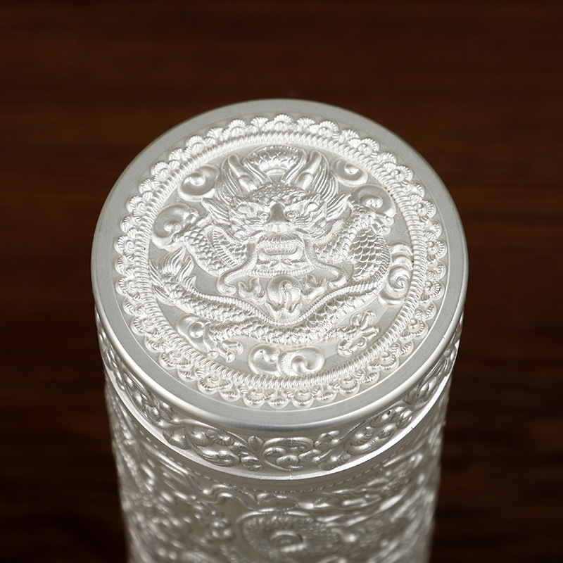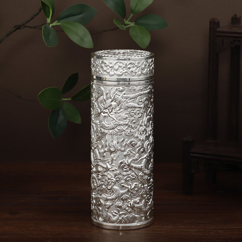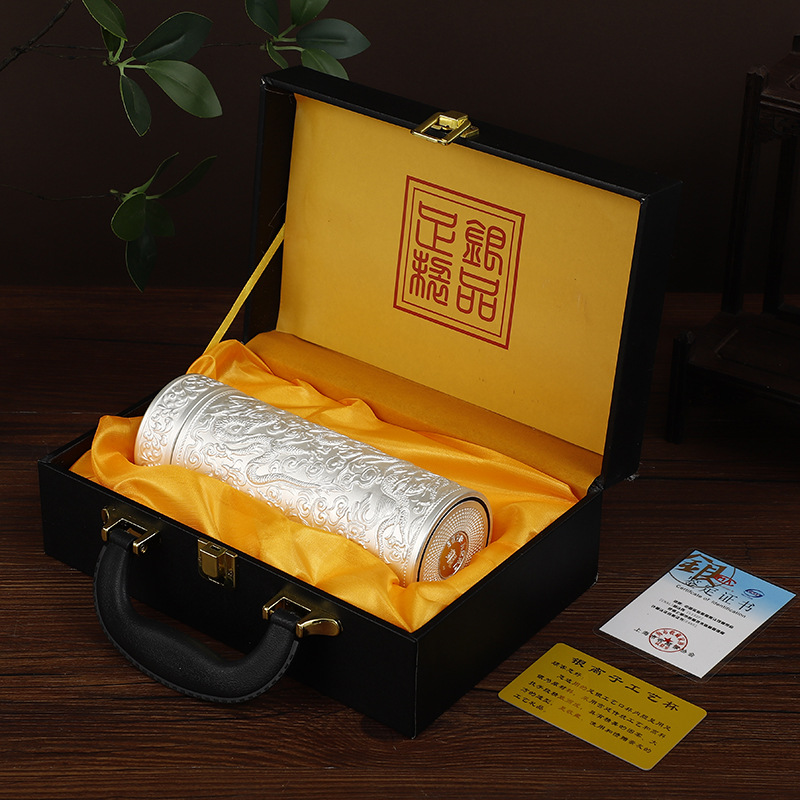 Kowloon 양각 선물 물 컵, 은색 절연 물 컵, 순수 실버 라이너 필터 티 컵, 홈 비즈니스 장식품 세트스토어 가기