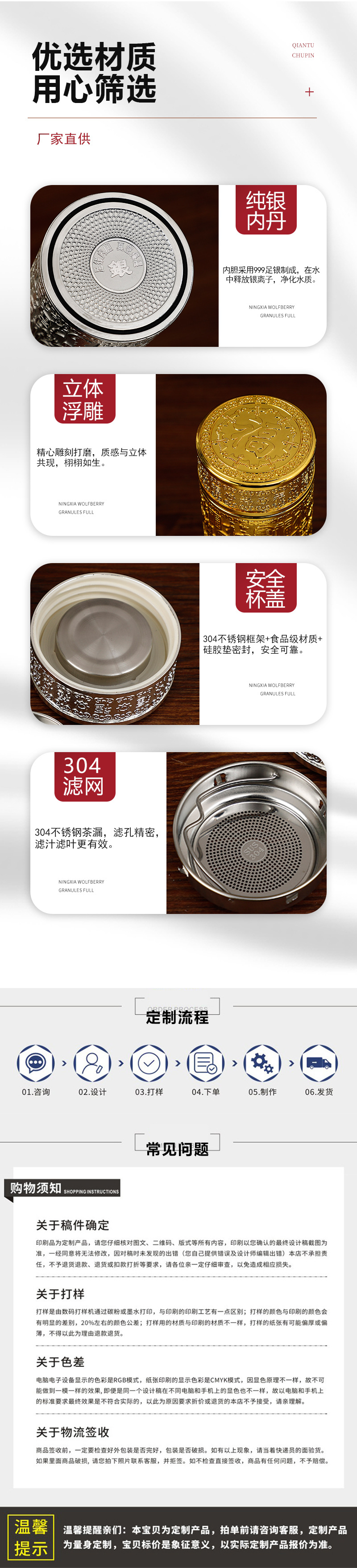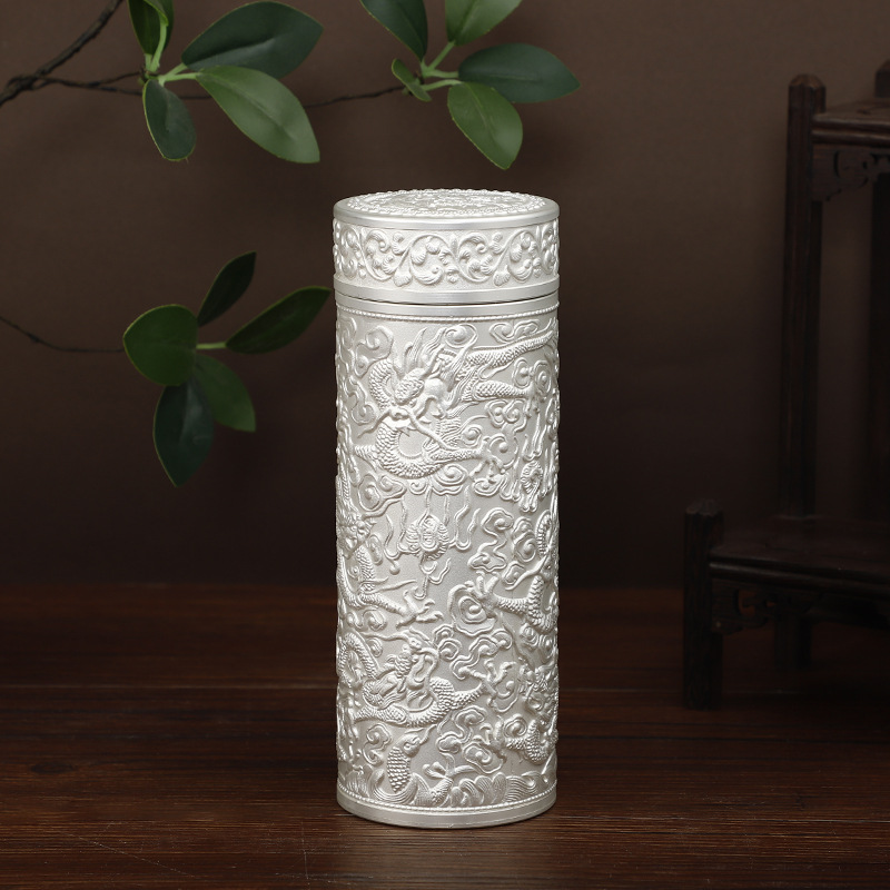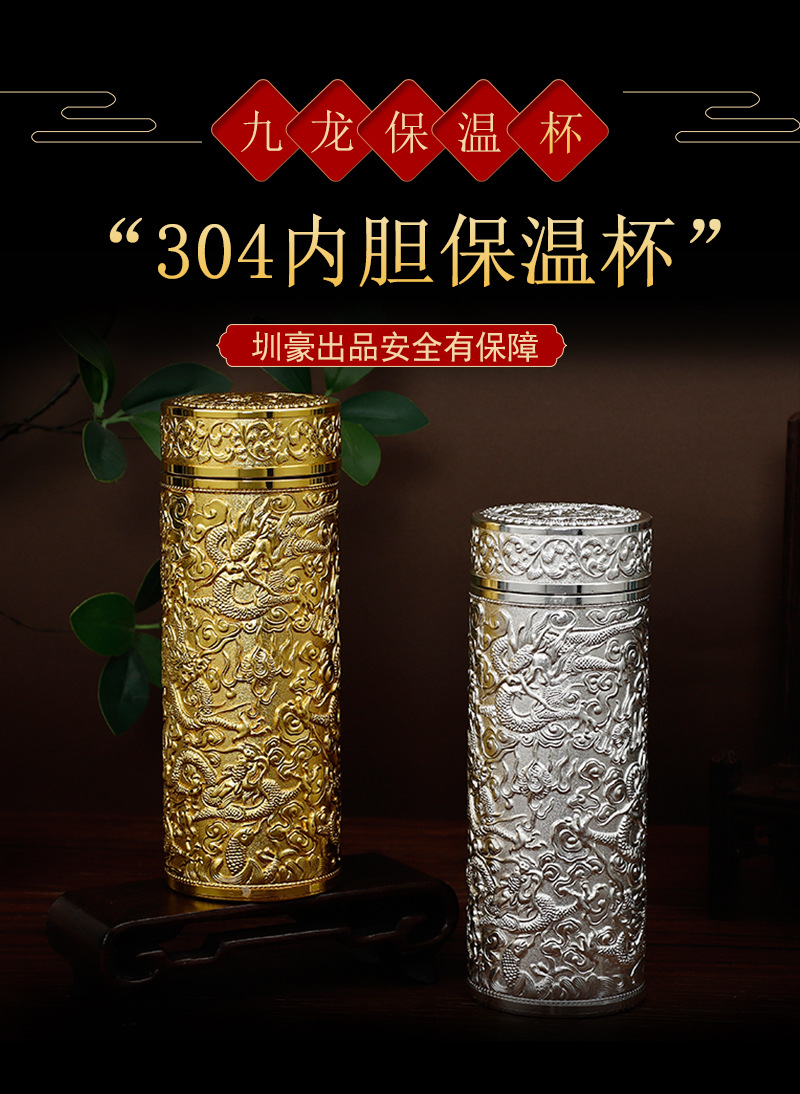 Kowloon 양각 선물 물 컵, 은색 절연 물 컵, 순수 실버 라이너 필터 티 컵, 홈 비즈니스 장식품 세트스토어 가기