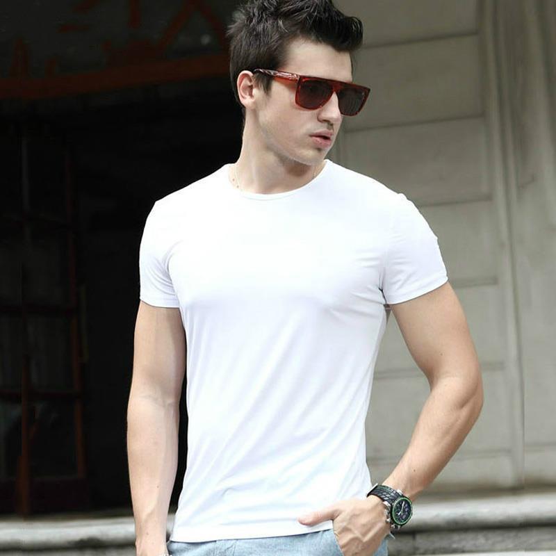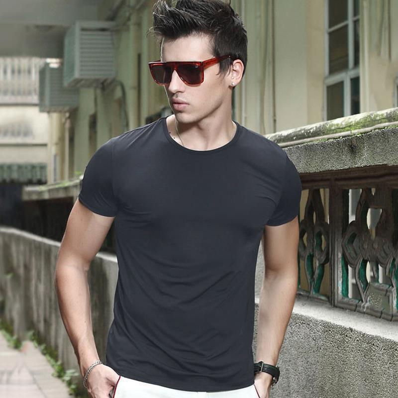 여름 남자 아이스 통기성 반팔 티셔츠 얇은 솔리드 컬러 하이 스트레치 스포츠 빠른 건조 티셔츠 플러스 대형 사이즈