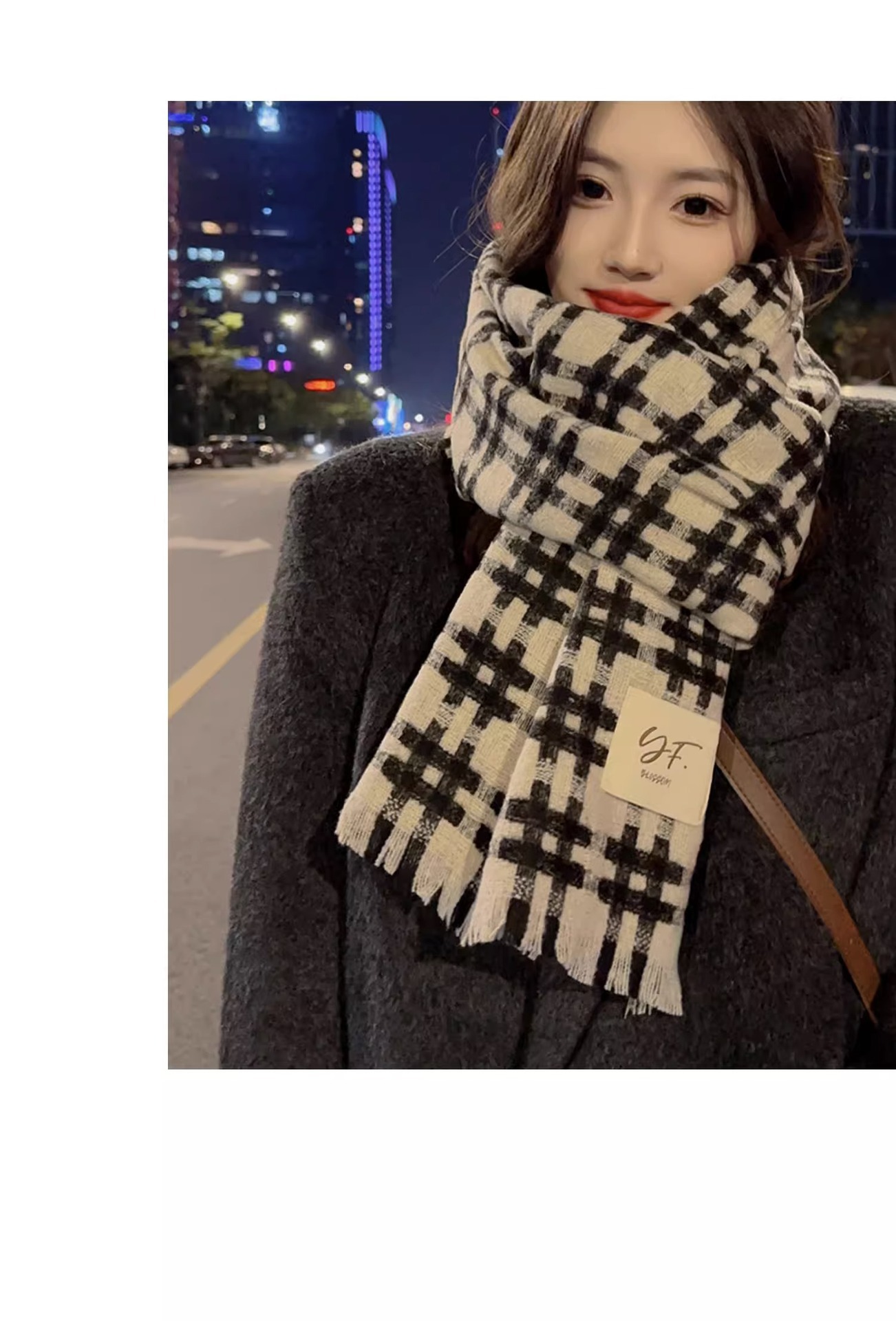 한국 스타일의 체크 무늬 스카프 여성의 겨울 고급 다재다능한 긴 캐시미어 같은 목도리 온라인 유명 학생 커플 스카프스토어 가기