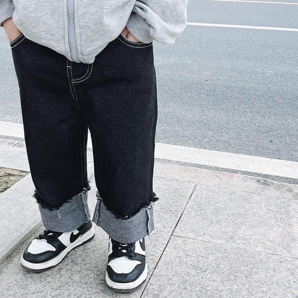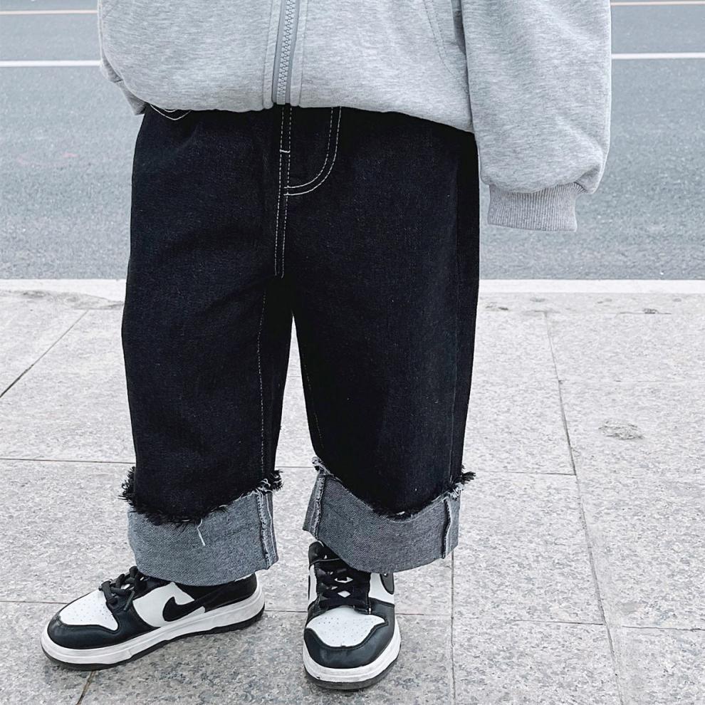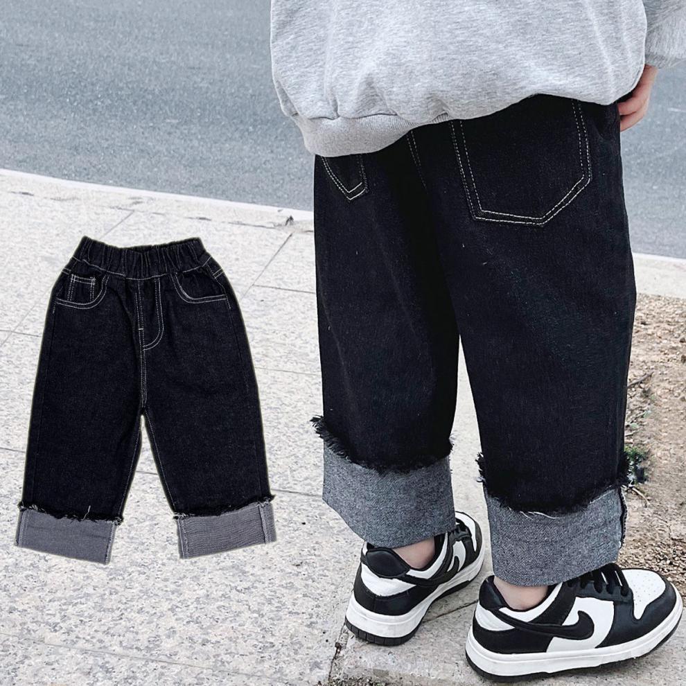 소년 청바지 2023 새로운 서양 스타일 트렌디 한 봄과 가을 한국 스타일 플랜지 넓은 다리 바지 어린이 캐주얼 스트레이트 바지스토어 가기