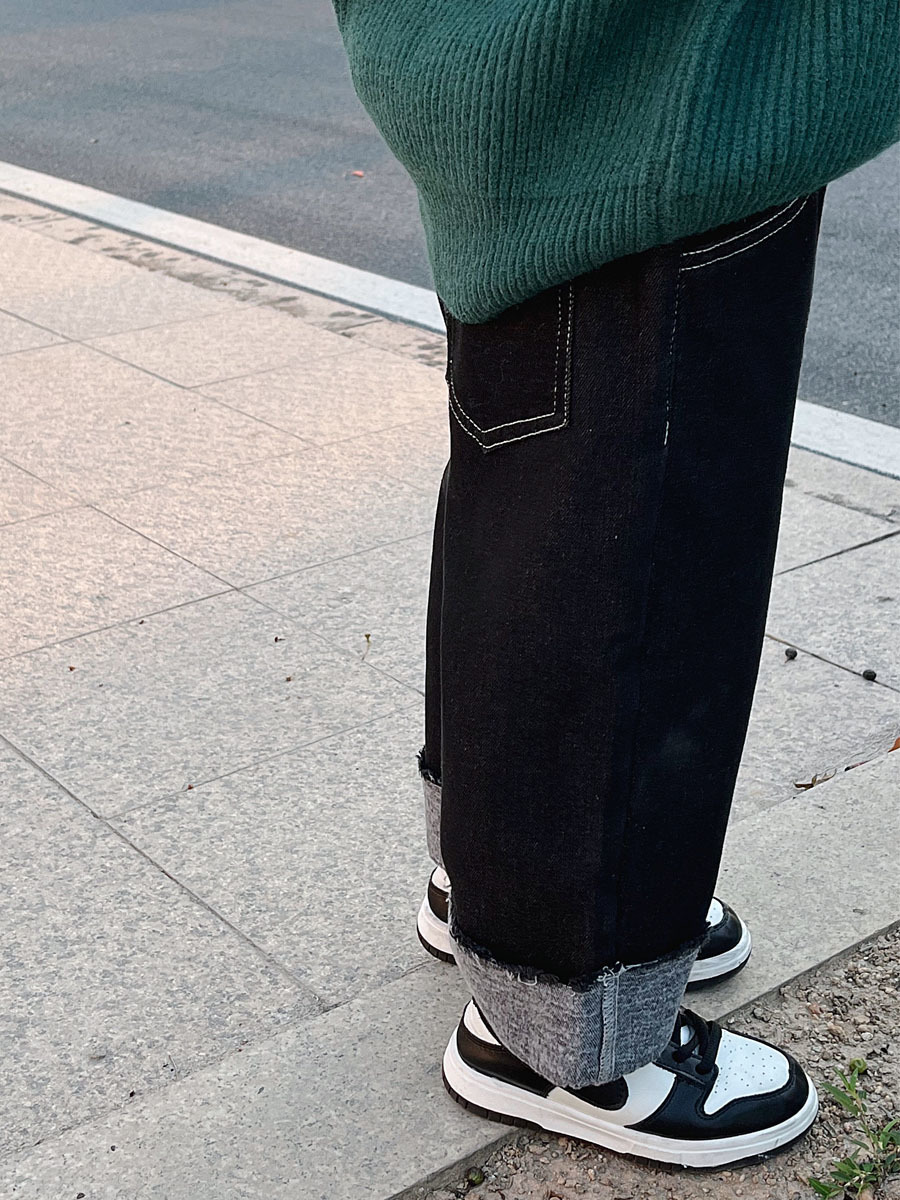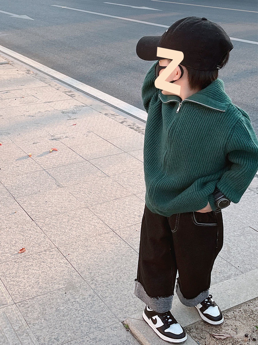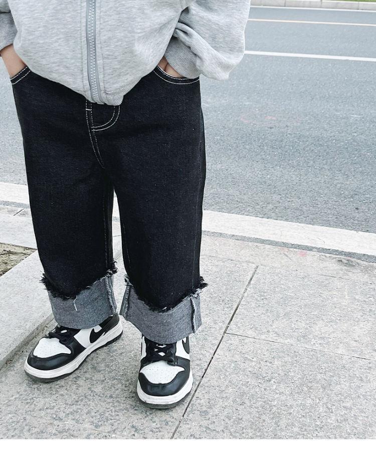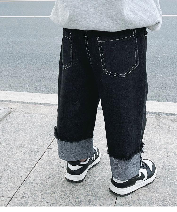 소년 청바지 2023 새로운 서양 스타일 트렌디 한 봄과 가을 한국 스타일 플랜지 넓은 다리 바지 어린이 캐주얼 스트레이트 바지스토어 가기