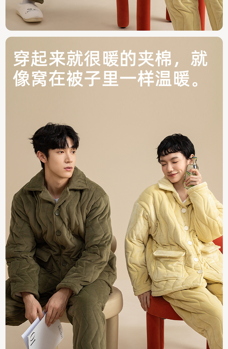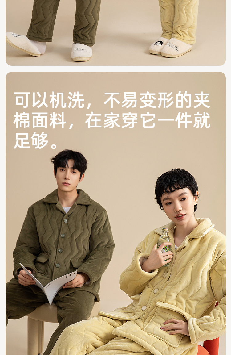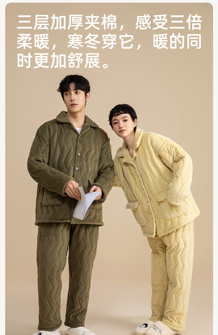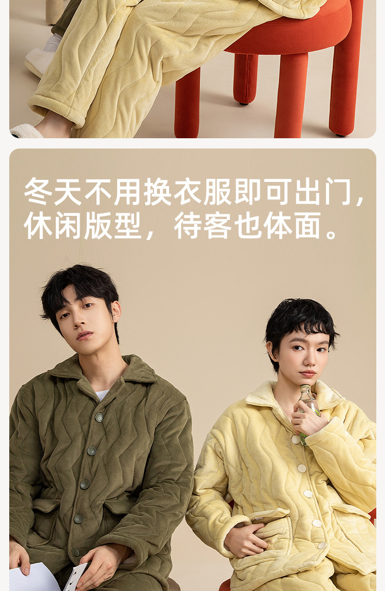 3 층 퀼트 두꺼운 잠옷 커플 겨울 산호 양털 정전기 방지 여성 기모 남성 홈웨어 세트스토어 가기