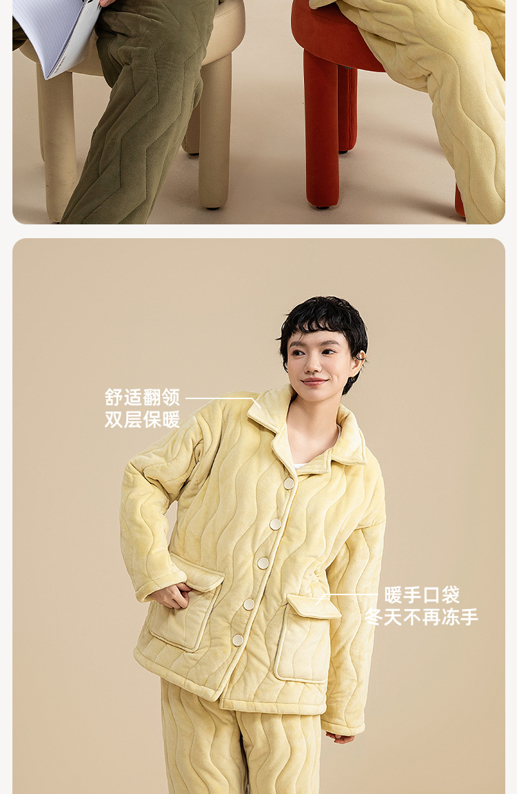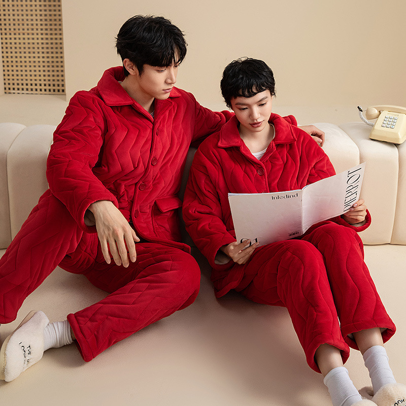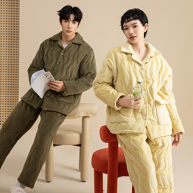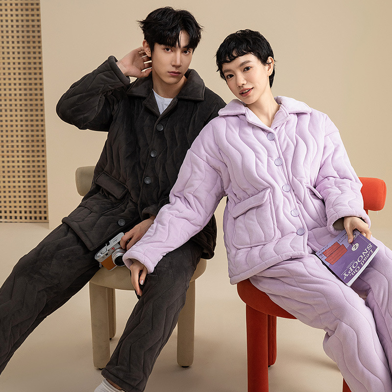 3 층 퀼트 두꺼운 잠옷 커플 겨울 산호 양털 정전기 방지 여성 기모 남성 홈웨어 세트