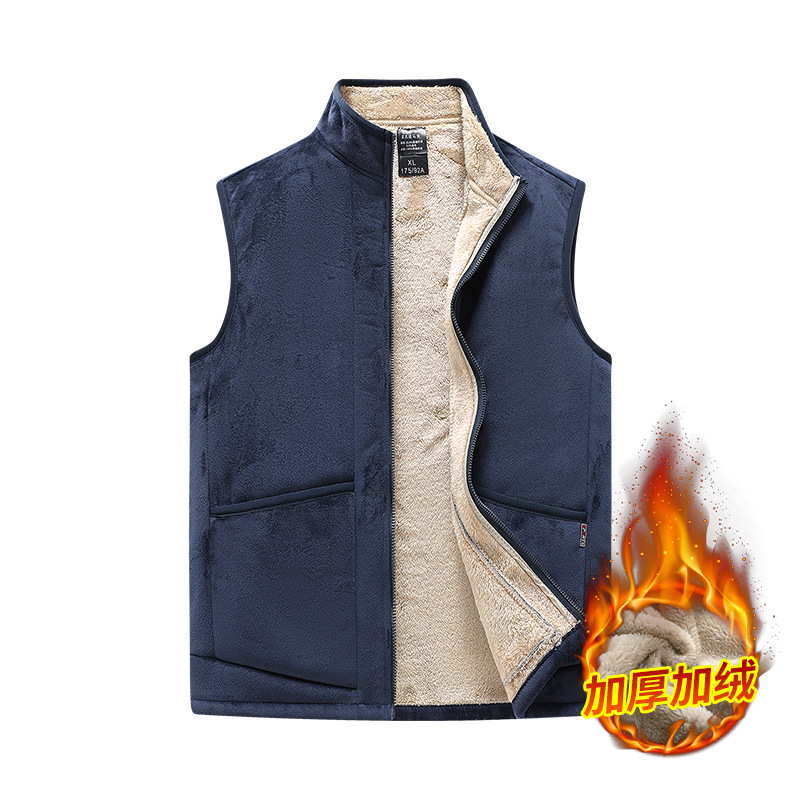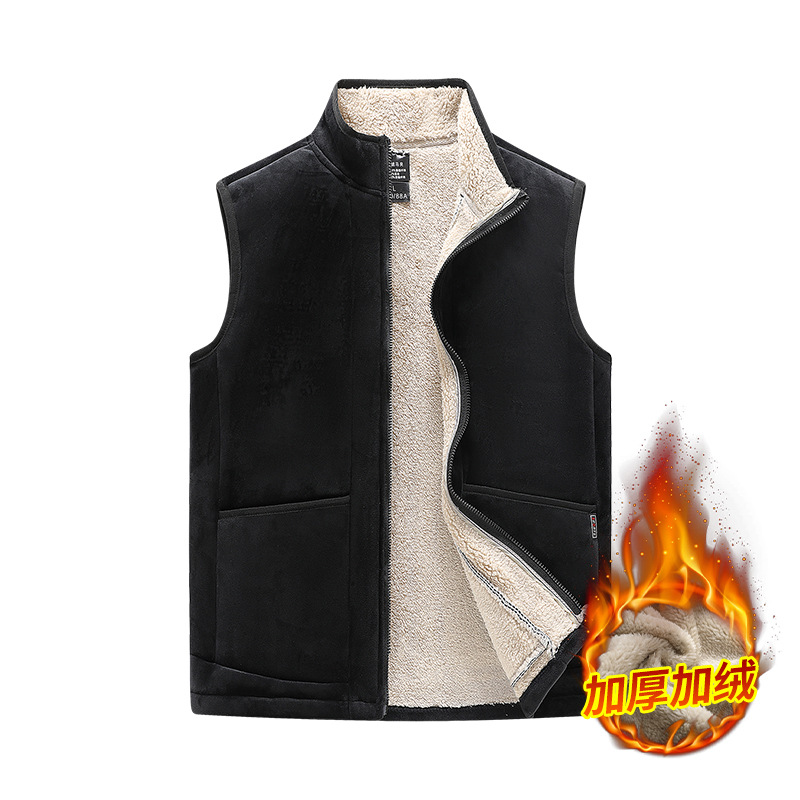 가을 겨울 양털 조끼 남성용 보온 조끼 캐주얼 스탠드 칼라 플러스 벨벳 민소매 양면 플리스 크로스보더 조끼 재킷