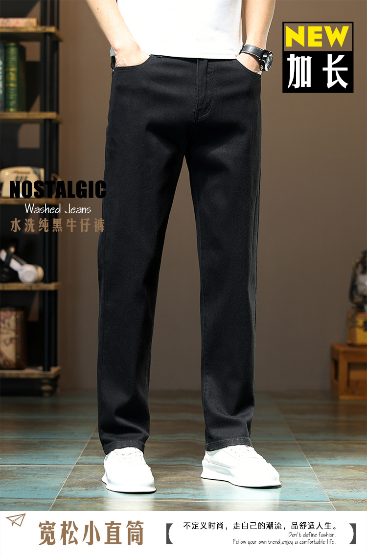 가을 2023 순수 블랙 확장 청바지 남성용 스트레치 스키니 팬츠 슬림 핏 슈퍼 롱 남성용 바지 청바지 남성용 바지스토어 가기
