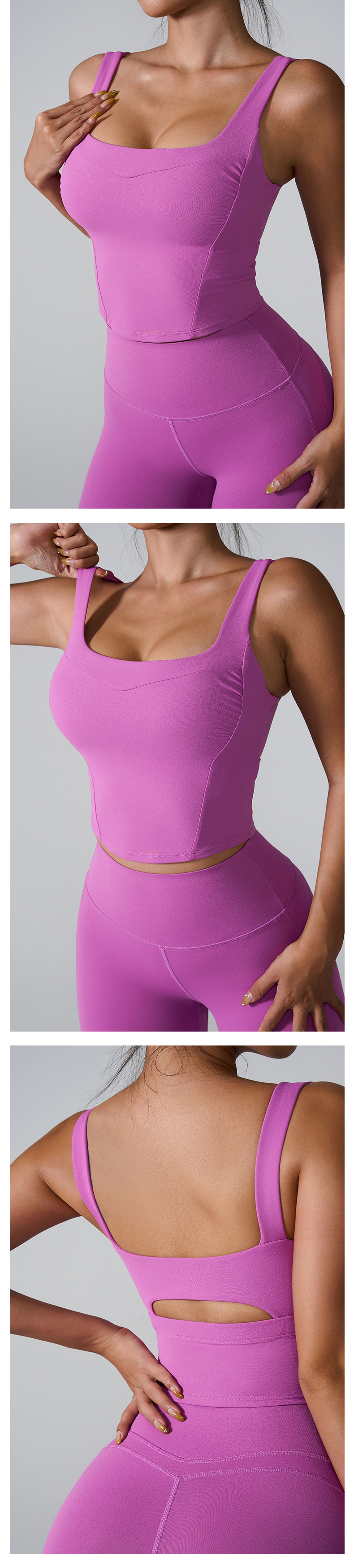 Ins2024 봄과 여름 유럽과 미국의 국경 스포츠 브라 원피스 컵 스포츠 뷰티 백 여성을위한 빠른 건조 충격 방지 스포츠 브라