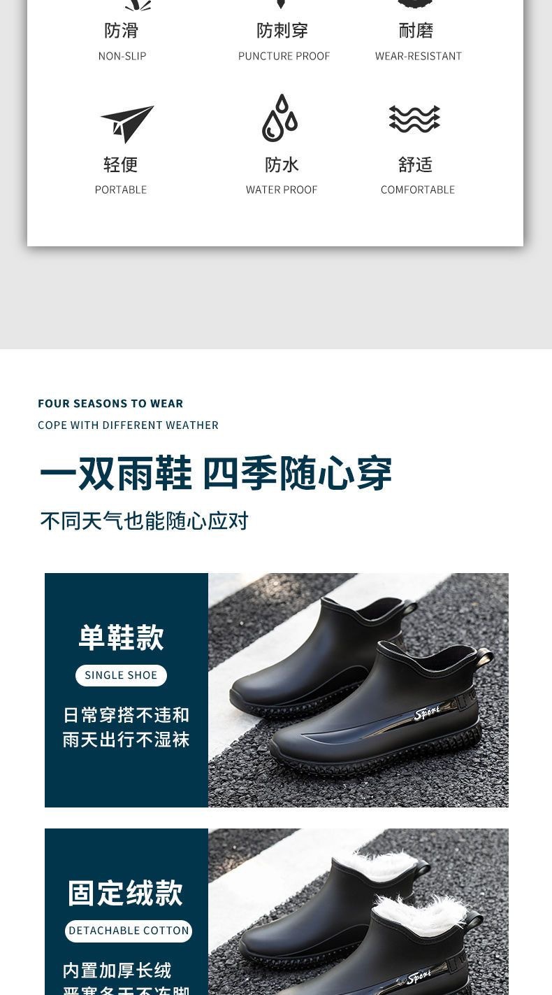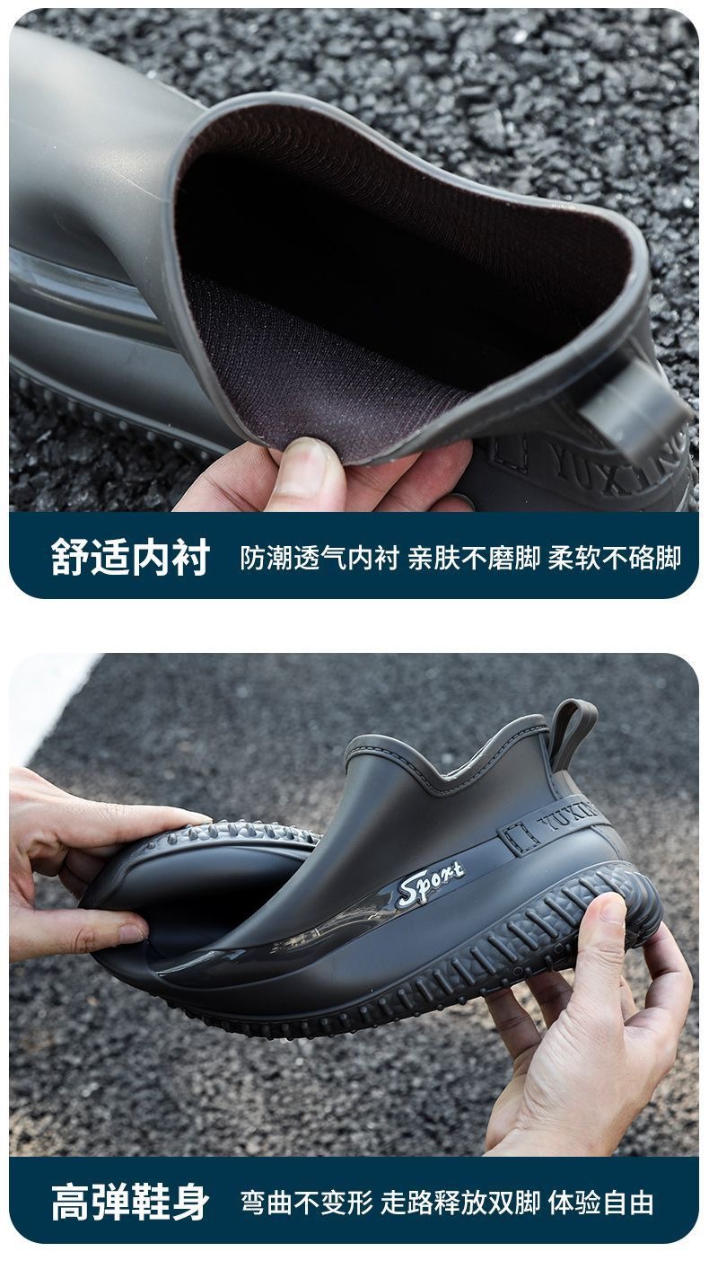 패션 짧은 장화 남성 사계절 작업 신발 낮은 최고 미끄럼 방지 주방 신발 내마모성 고무 신발 낚시 신발 방수 신발