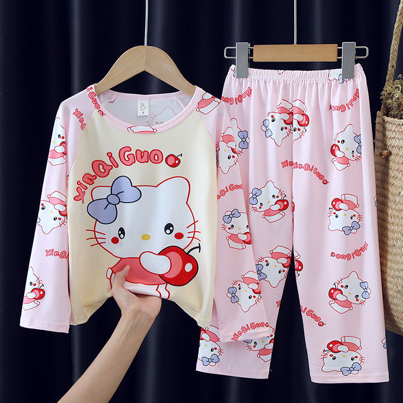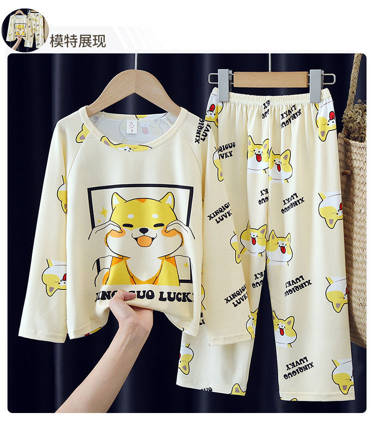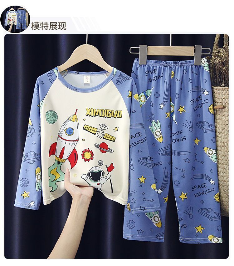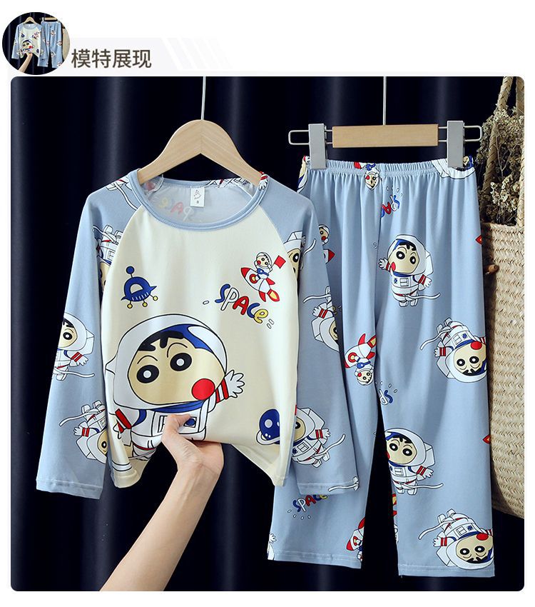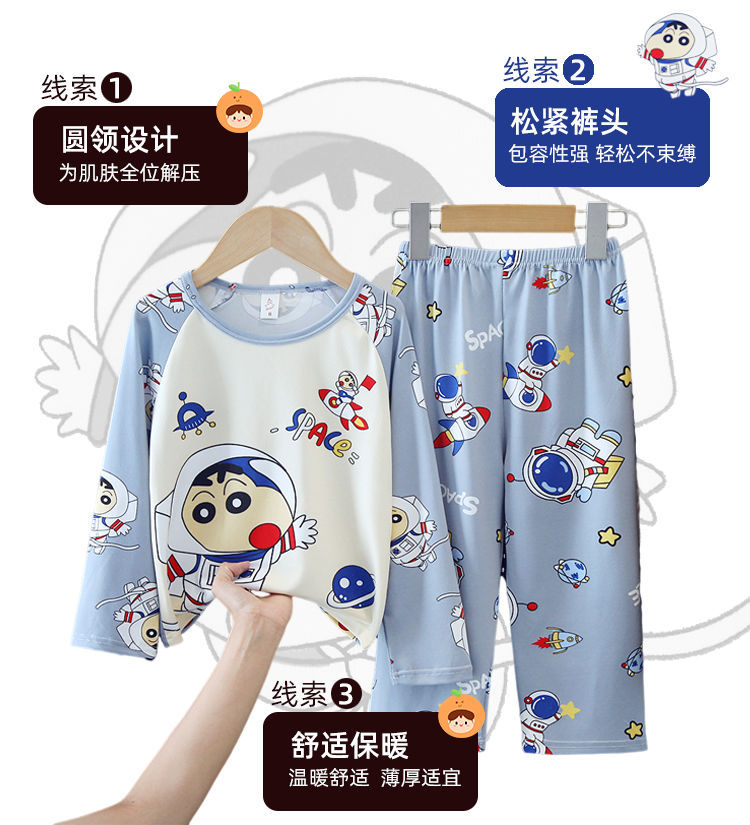 남학생과 여학생을위한 봄과 가을 어린이 잠옷 긴팔 만화 세트 초등학생을위한 중년 아동과 아기를위한 새 집 옷스토어 가기