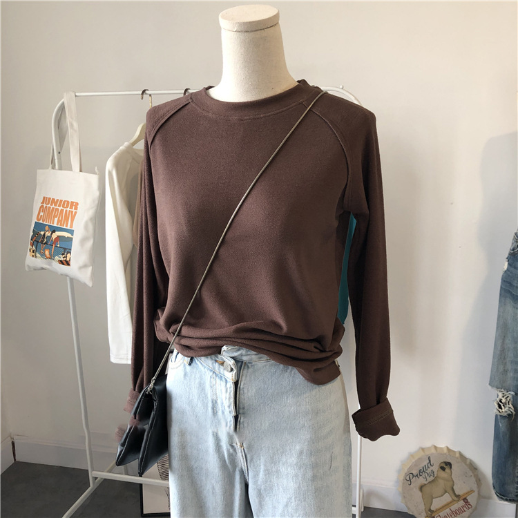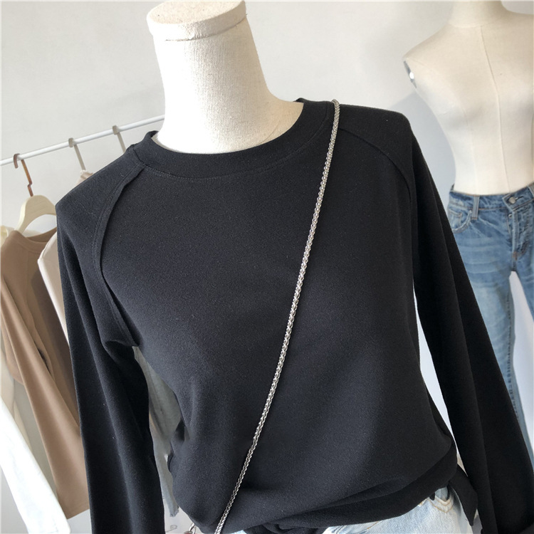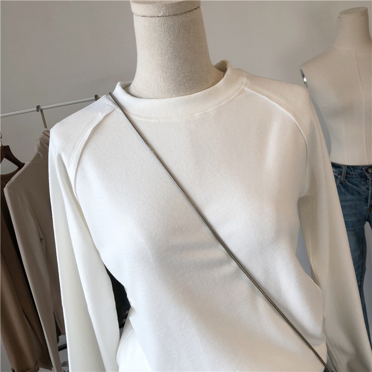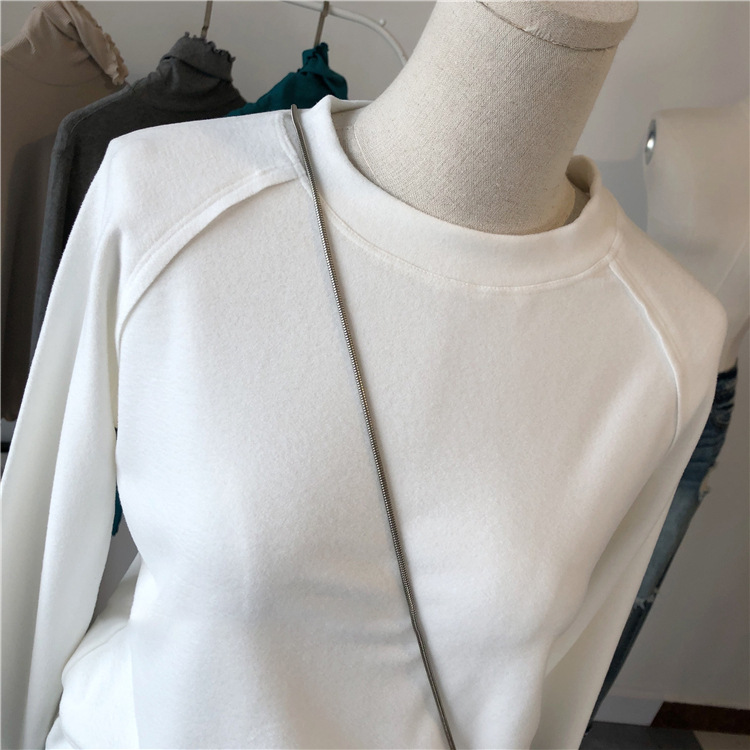 플러스 두꺼운 벨벳 디자인 가을과 겨울 2023 흰색 바닥 셔츠 새로운 여성을위한 간단한 따뜻한 긴 소매 내부 티셔츠스토어 가기