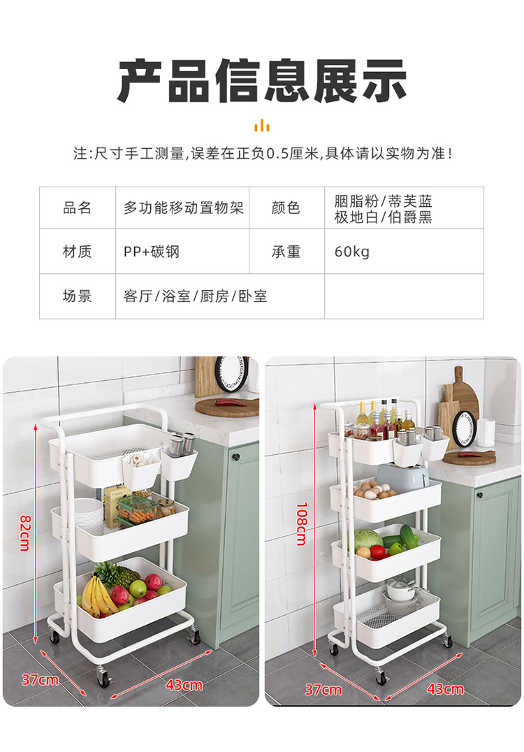 바닥 다층 트롤리 보관 랙 주방 움직일 수있는 아기 욕실 보관 랙 가정용 스낵 보관 랙스토어 가기