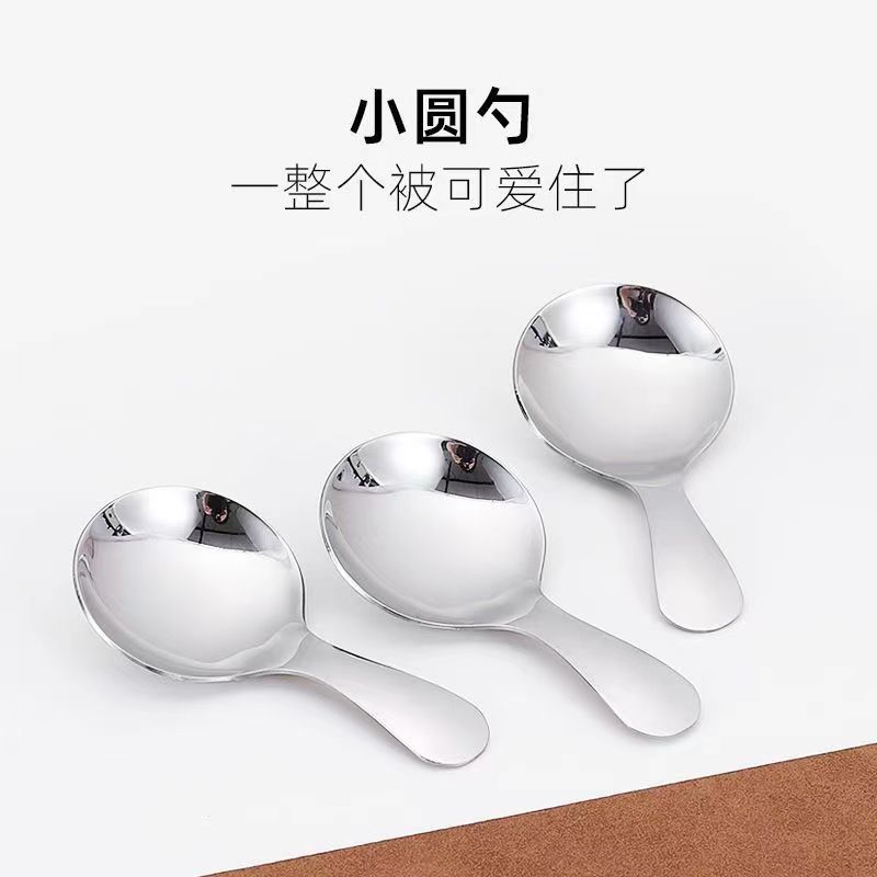 304 스테인리스 스틸 숟가락, 인터넷 인기 상품, 짧은 손잡이, 둥근 머리 숟가락, 가정용 차 숟가락, 창의적인 디저트 숟가락, 아이스크림 숟가락, 분유 숟가락