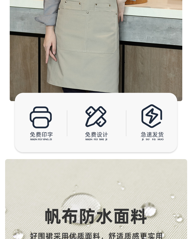 • FM-181 인터넷 유명 인사 방수 캔버스 앞치마 그레이 [발수]