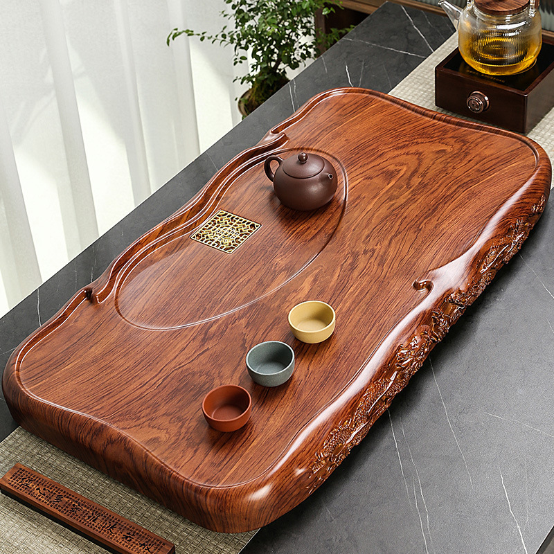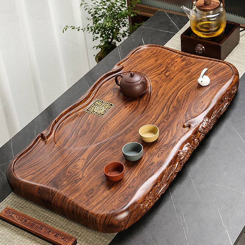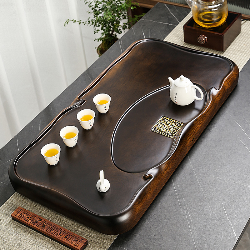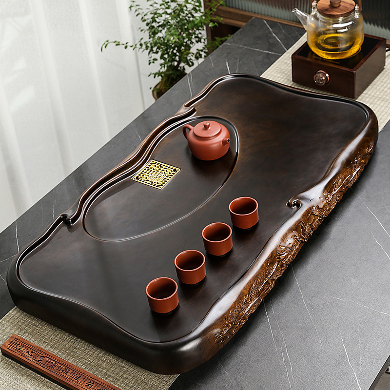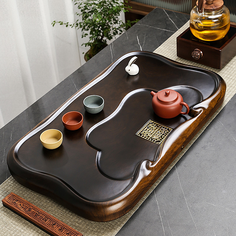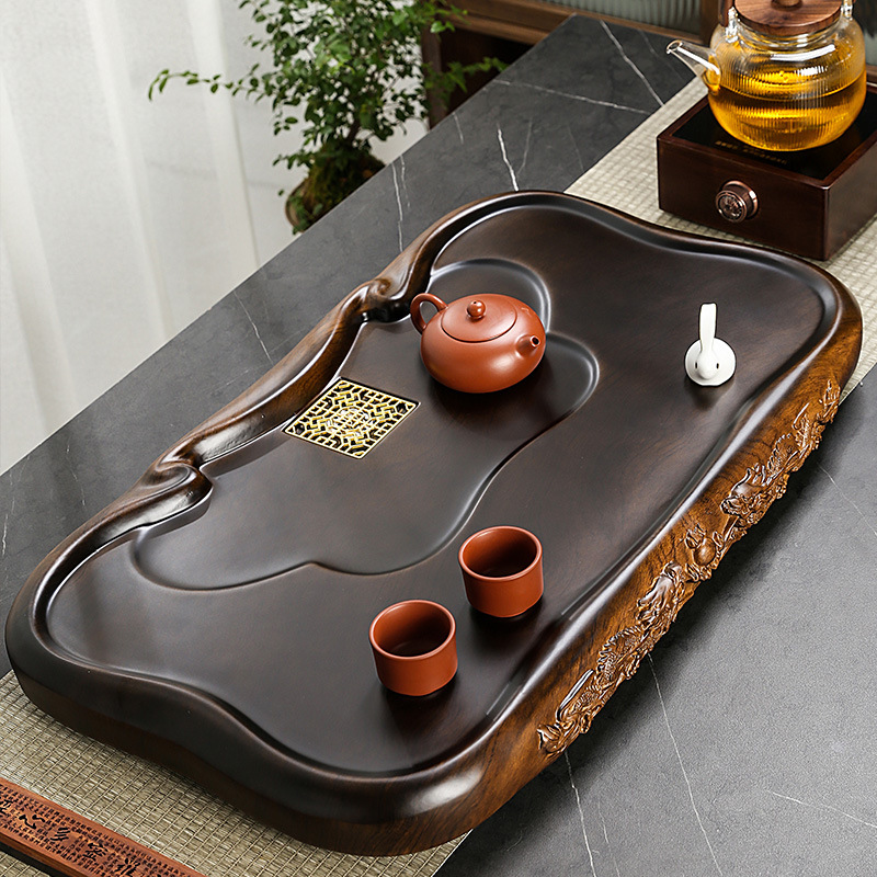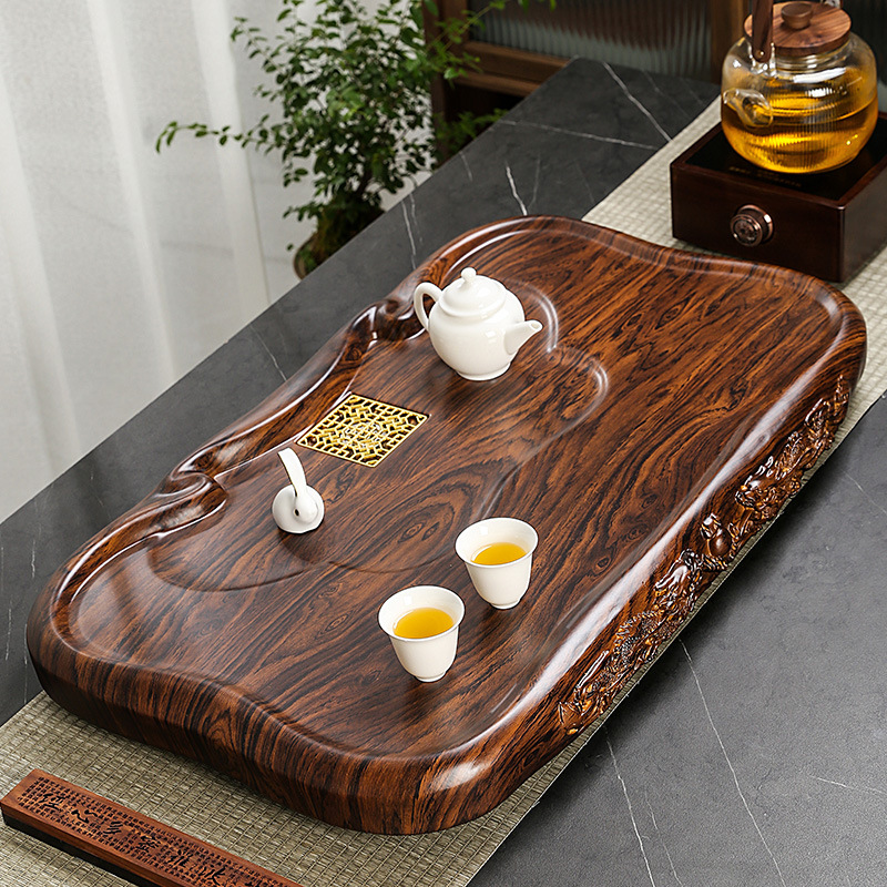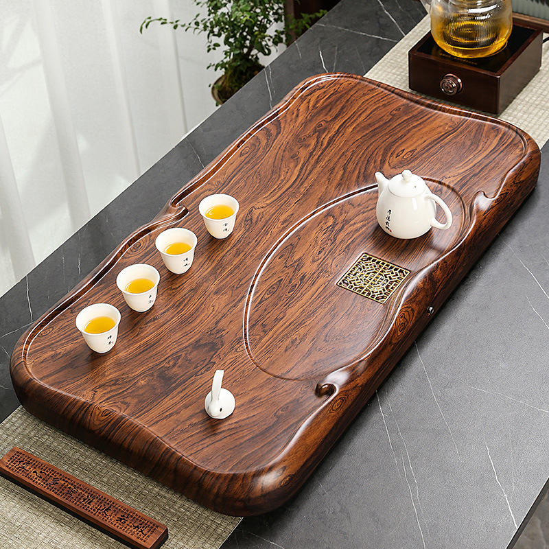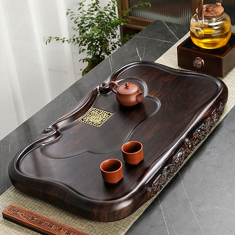 에보니 티 트레이 가정용 전체 단단한 나무 티 테이블 스몰 사이즈 직사각형 로그 로즈 우드 트레이 간단한 배수스토어 가기