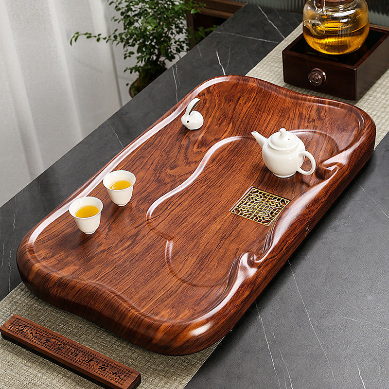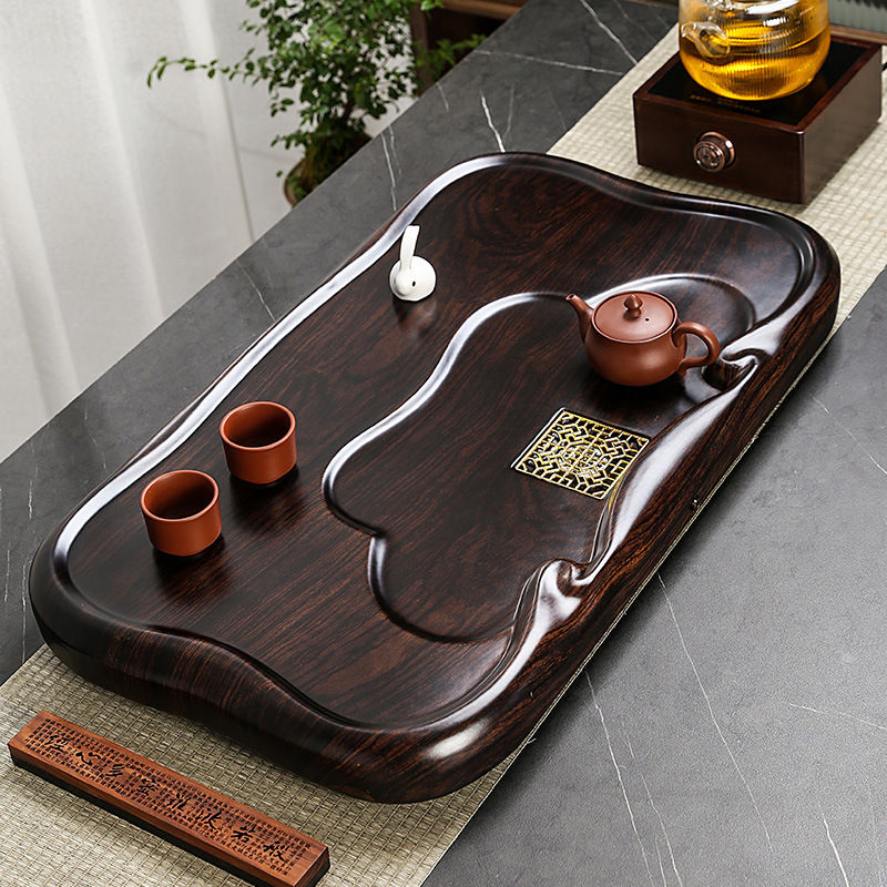 에보니 티 트레이 가정용 전체 단단한 나무 티 테이블 스몰 사이즈 직사각형 로그 로즈 우드 트레이 간단한 배수
