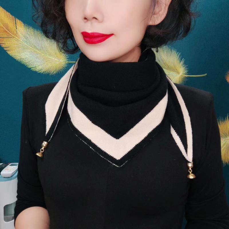 세련된 새로운 가을과 겨울 2 색 따뜻한 작은 황금 공 마그네틱 버클 니트 삼각형 스카프 Ai Mei 같은 스타일의 서양식 스카프스토어 가기