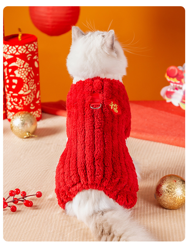 가을과 겨울 새해 스트립 견인 네 다리 벨벳 옷 고양이 옷이 고양이 새끼 고양이 털이없는 고양이 옷으로 두껍게스토어 가기