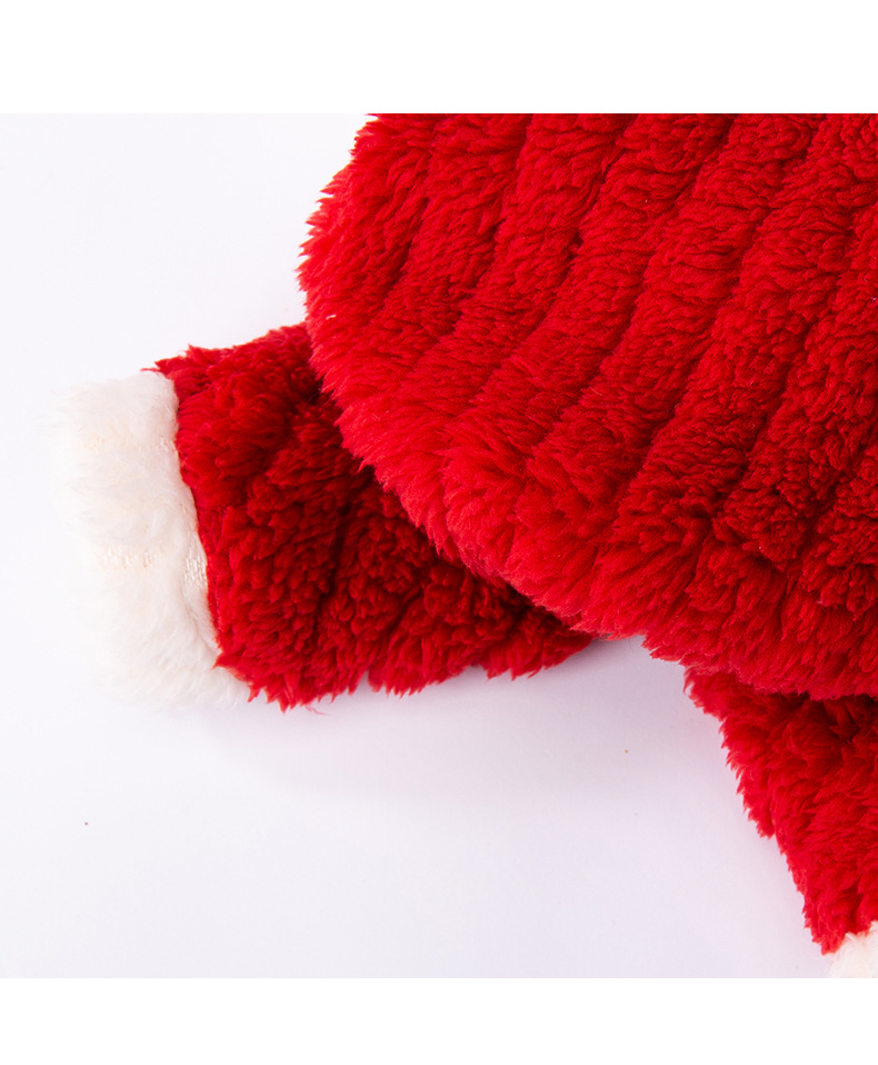 狗狗衣服加厚保暖条纹衬衫领两脚绒衣秋冬季泰迪中小型犬宠物服饰