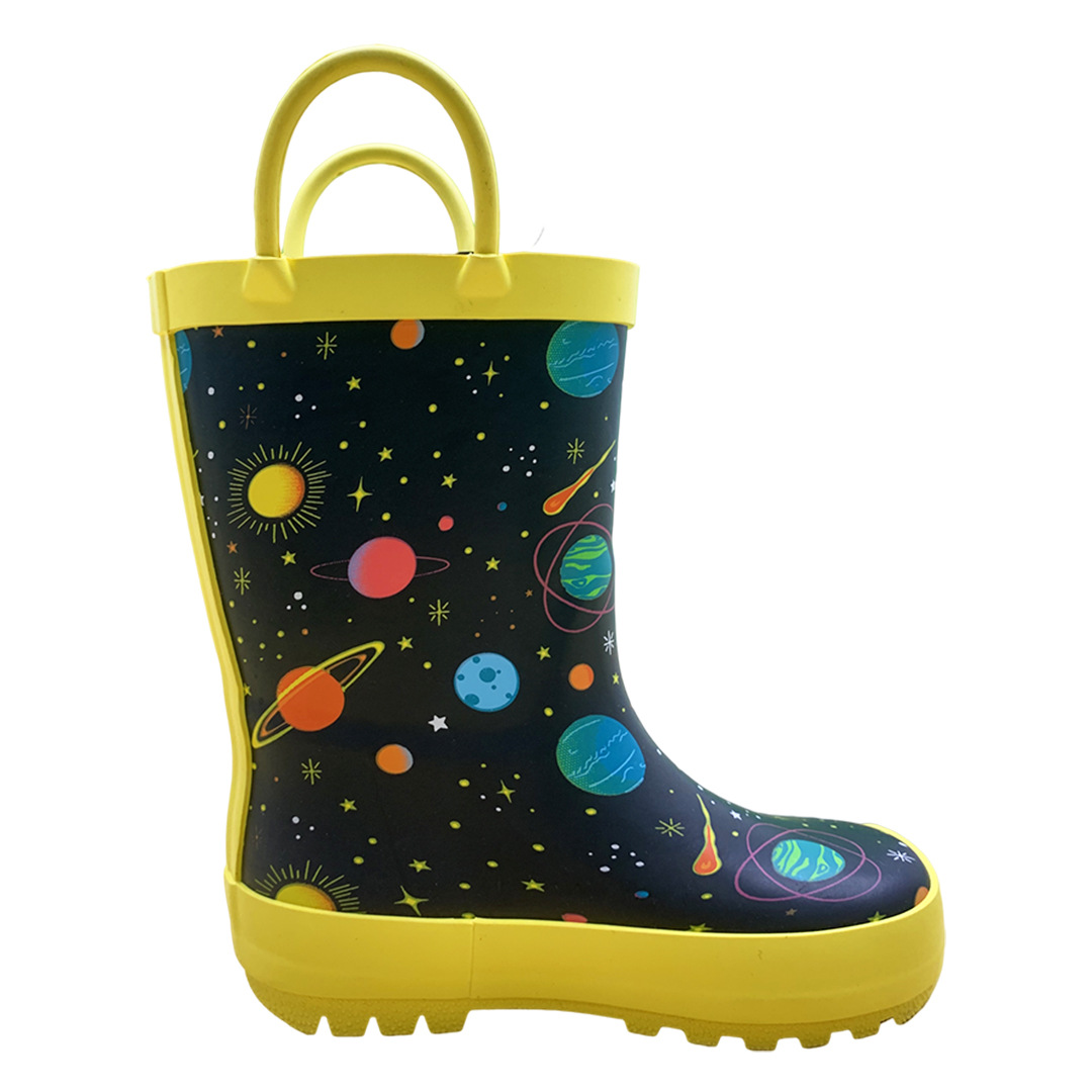 어린이 장화, 아기 휴대용 장화, 우주 만화 어린이 비옷, 야외 방수 및 미끄럼 방지 워터 슈즈, 유럽 및 미국으로 수출