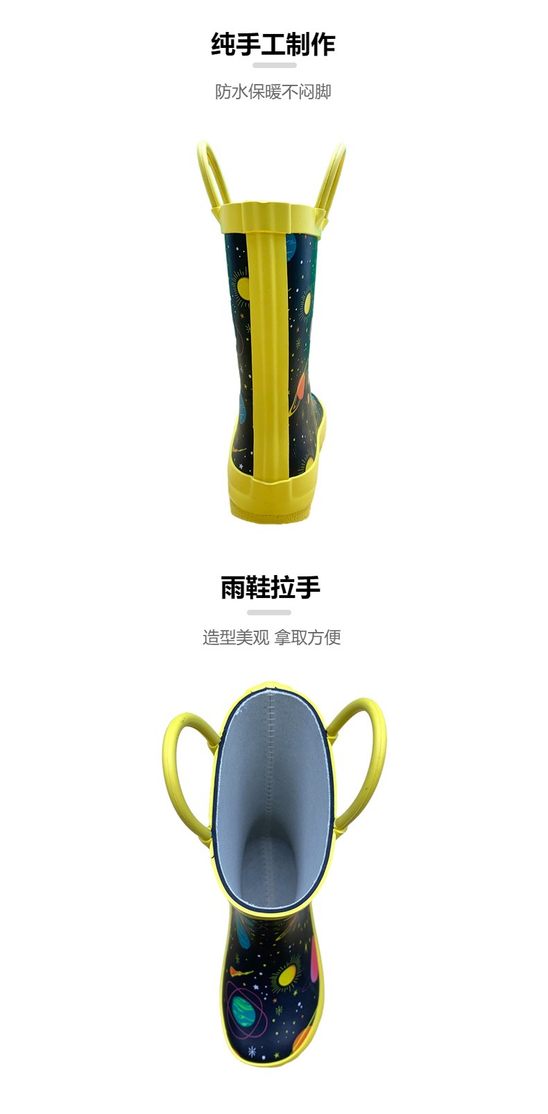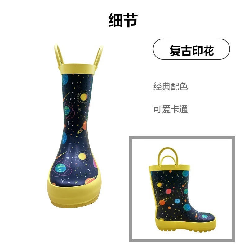 어린이 장화, 아기 휴대용 장화, 우주 만화 어린이 비옷, 야외 방수 및 미끄럼 방지 워터 슈즈, 유럽 및 미국으로 수출스토어 가기