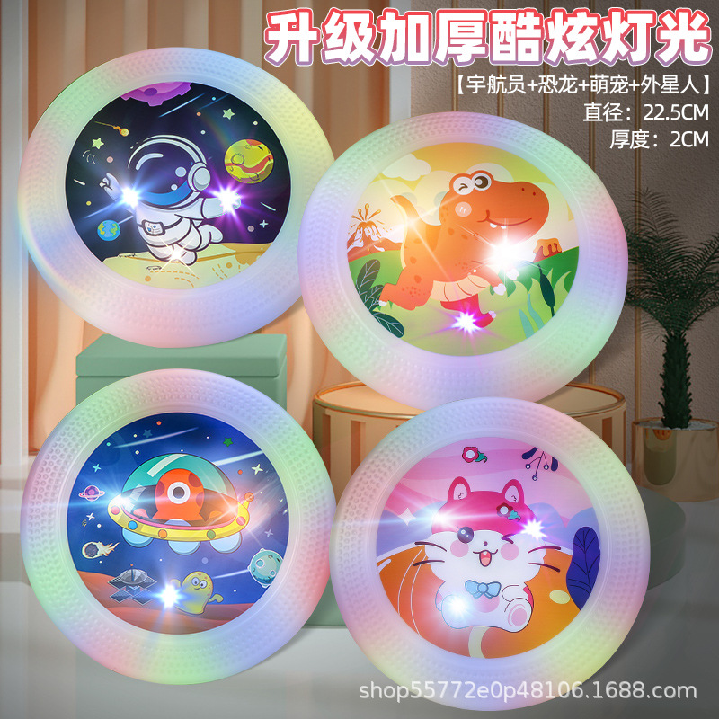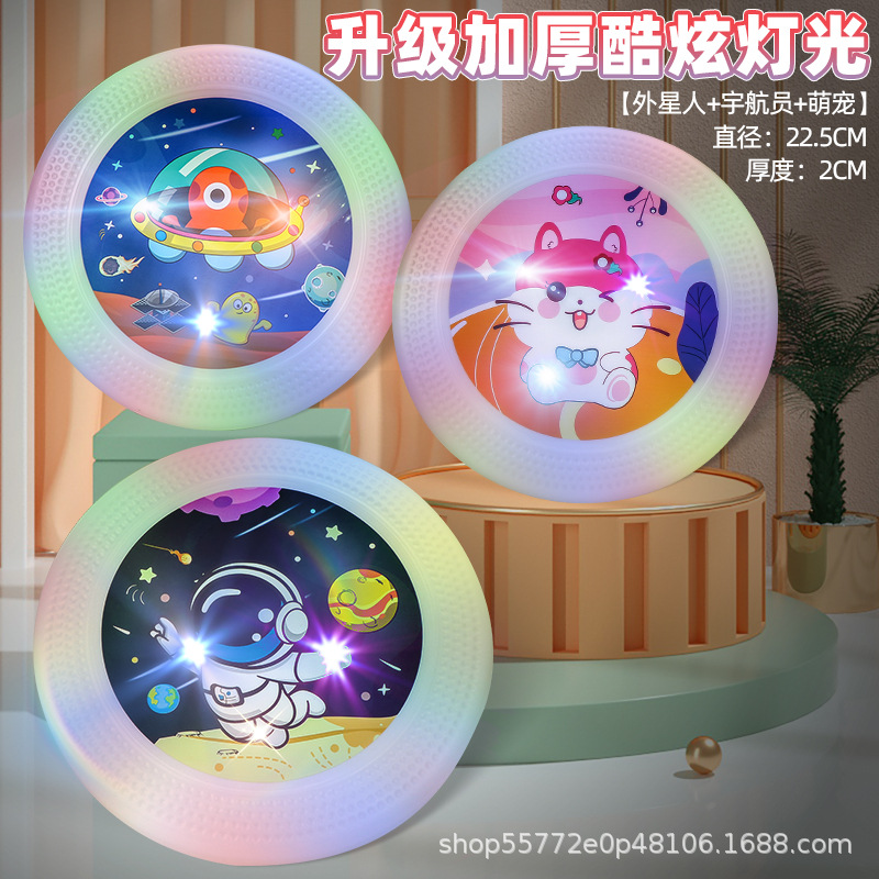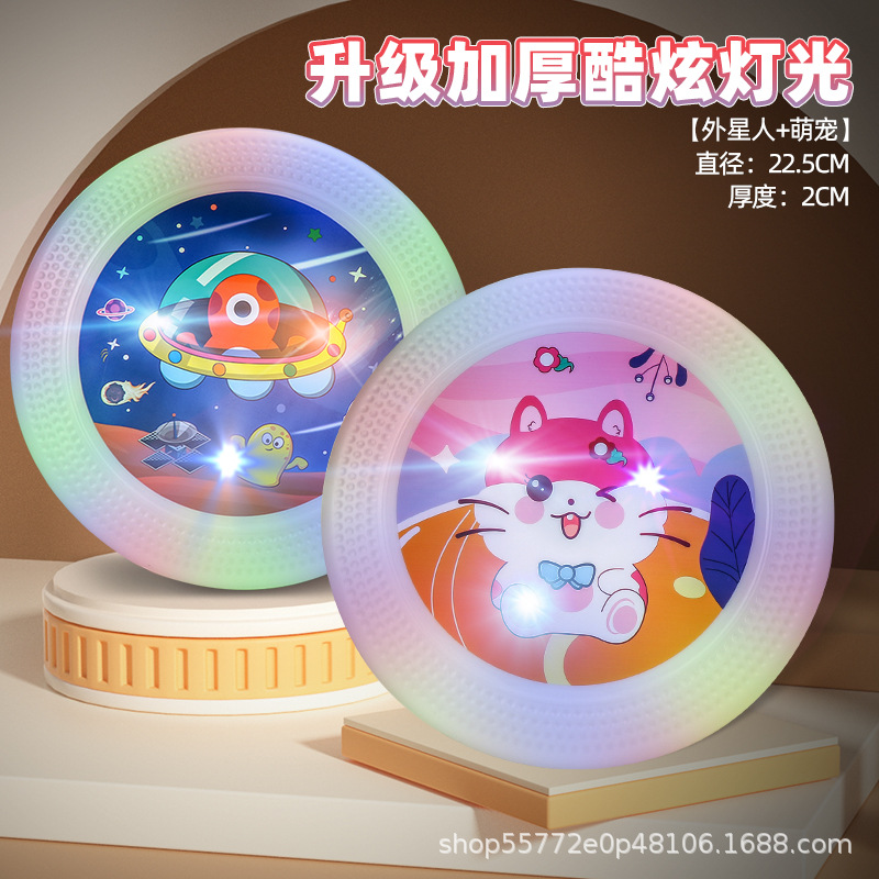 어린이 야외 조명 풀 소프트 프리스비 소년 야외 공원 잔디 스포츠 스윙 UFO 빛나는 작은 장난감스토어 가기