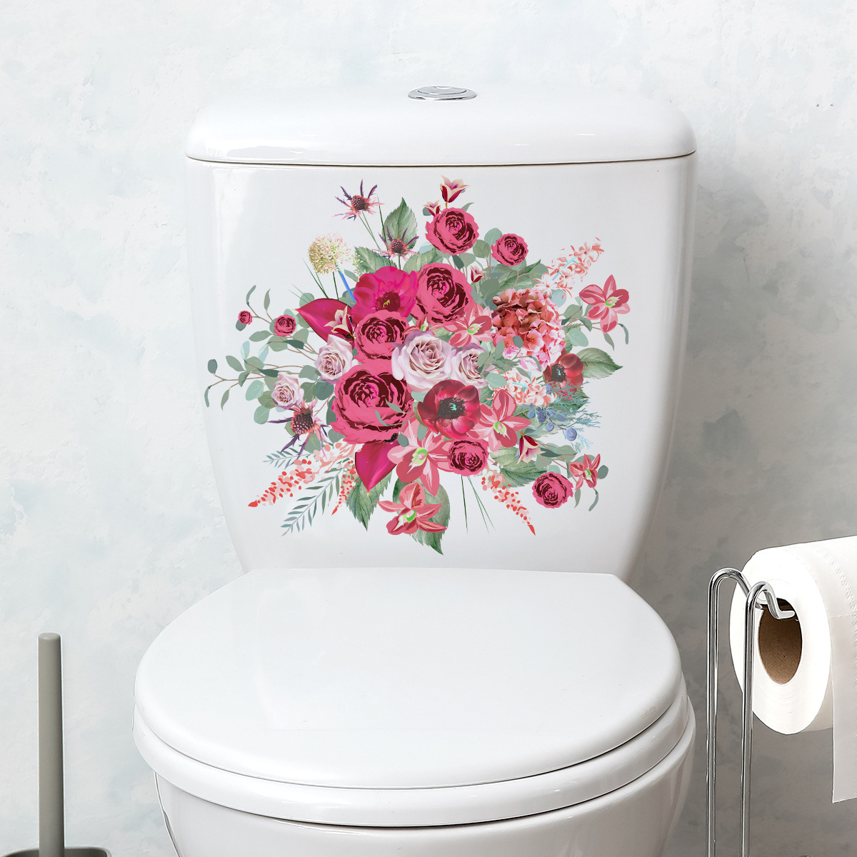MS3112-YL 간단한 붉은 식물 꽃 화장실 스티커 화장실 욕실 장식 벽 스티커 자체 접착 도매
