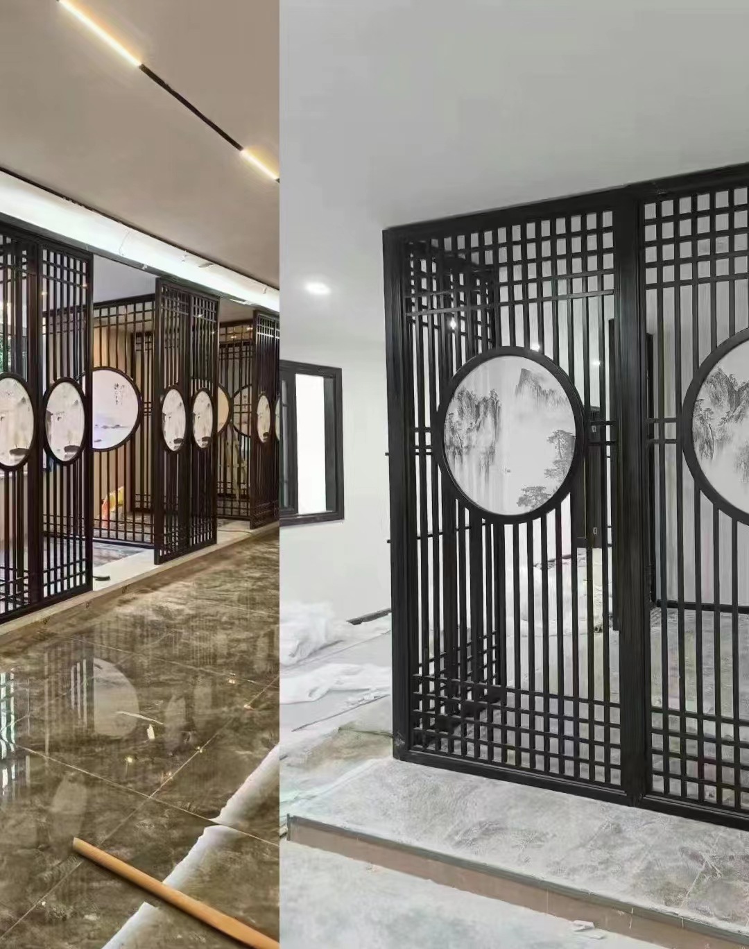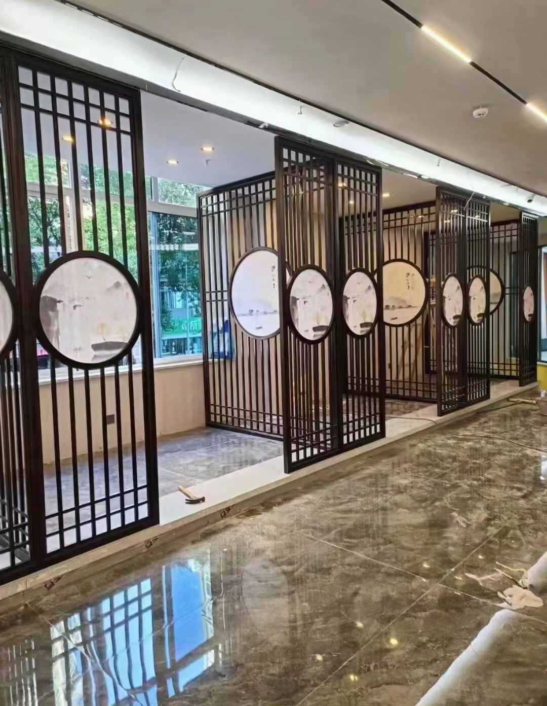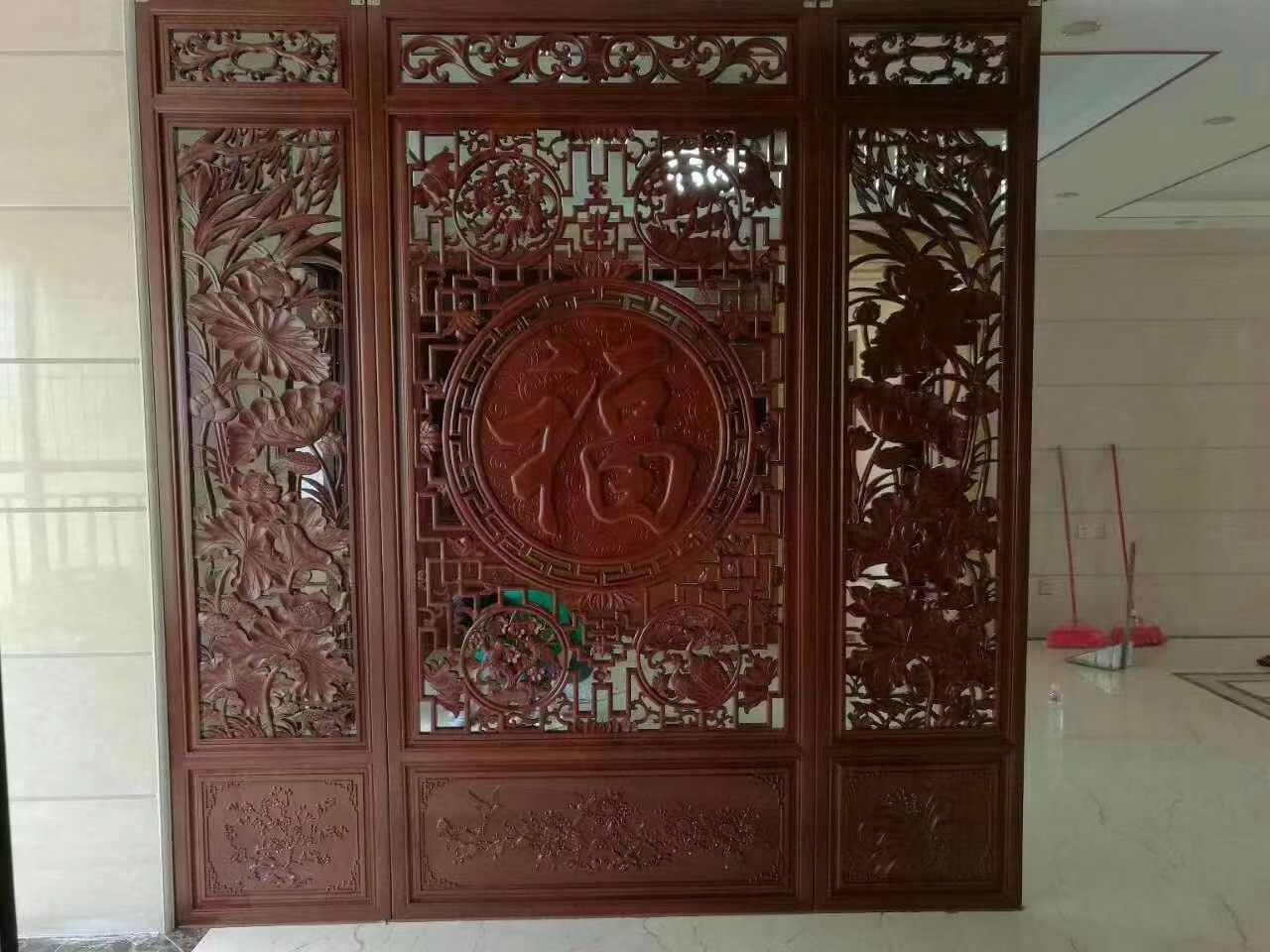 새로운 중국 스타일의 단단한 나무 스크린 파티션 거실 홈 양면 중공 차단 복도 입구 단단한 나무 복도 캐비닛