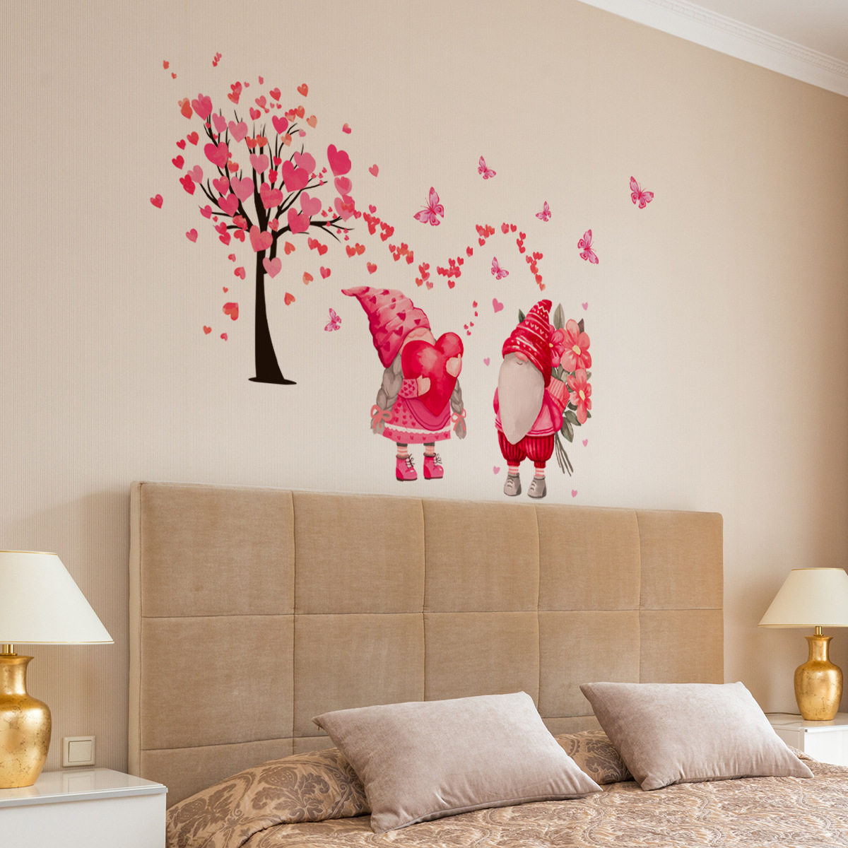 MS8019-NH 발렌타인 데이 벽 스티커 사랑 나무 난쟁이 나비 거실 침실 홈 장식 벽 스티커 자체 접착