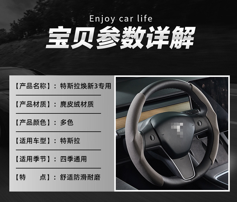 Tesla 스티어링 휠 커버에 적합 Tesla Renewal 3/Y 특수 초박형 땀 흡수 스티어링 휠 커버스토어 가기