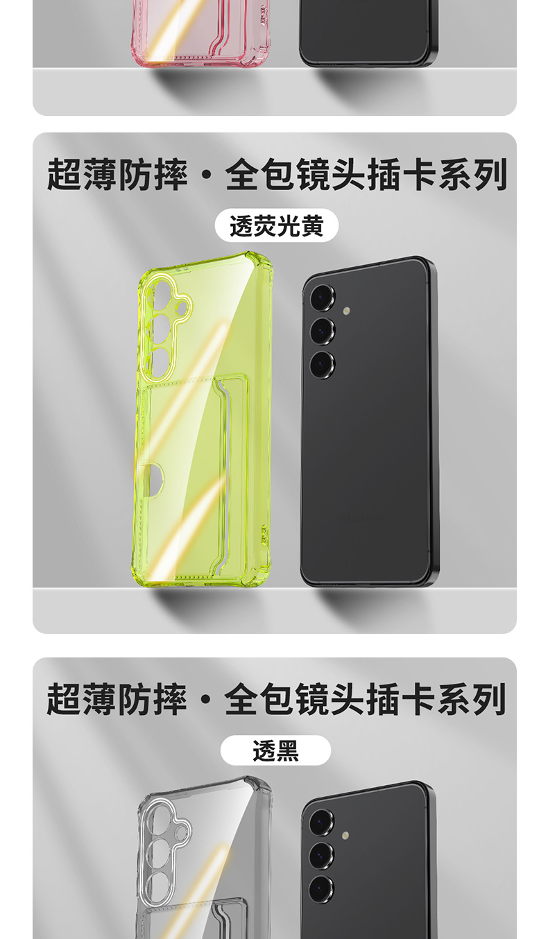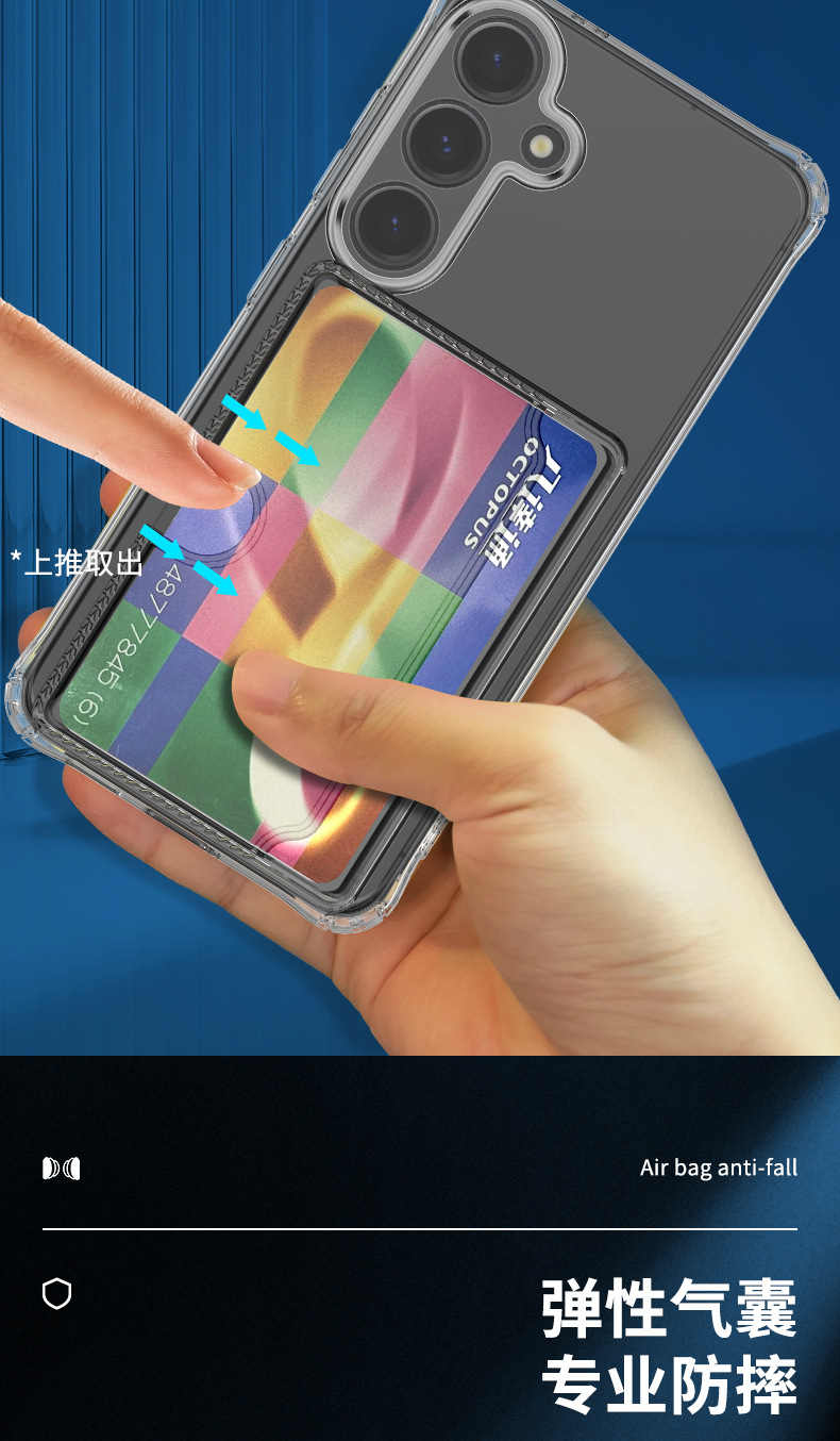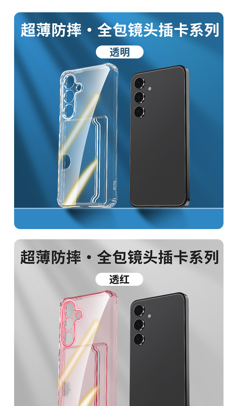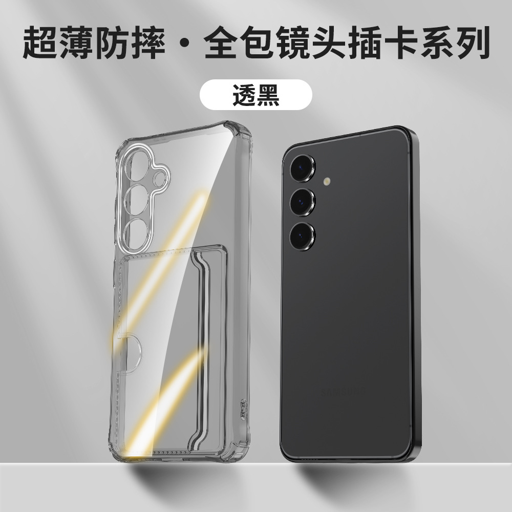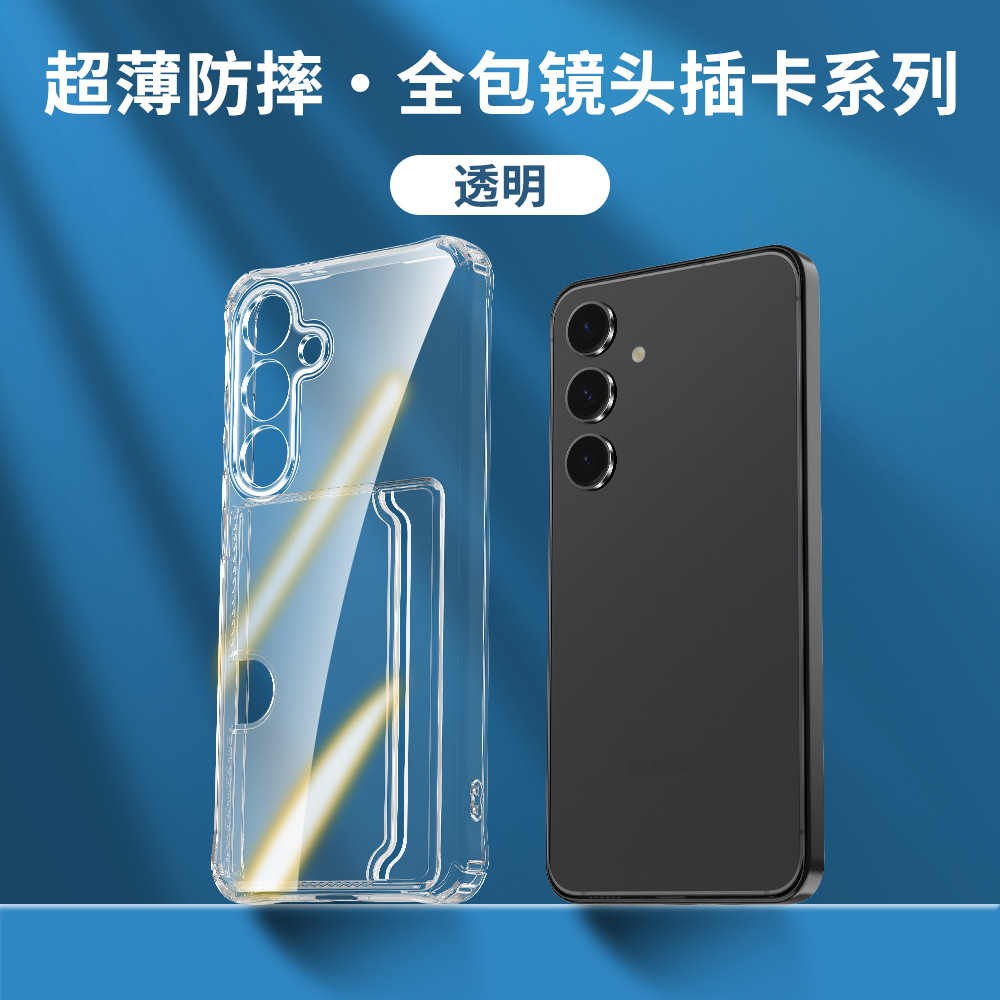 한국 삼성 s25FE에 적합한 정밀 구멍 투명 측면 카드 삽입형 TPU 휴대폰 케이스 A57 외부 낙하 방지 카드 홀더 보호 케이스