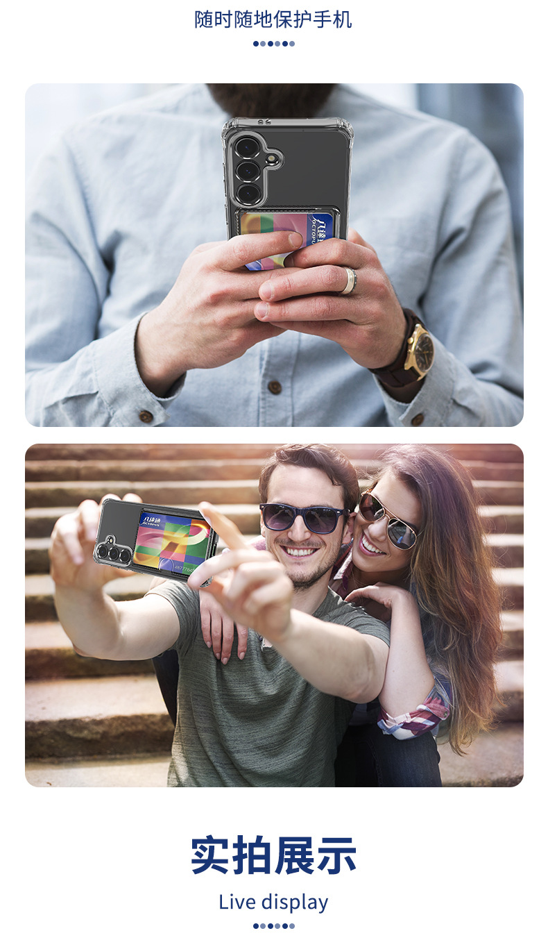 한국 삼성 s25FE에 적합한 정밀 구멍 투명 측면 카드 삽입형 TPU 휴대폰 케이스 A57 외부 낙하 방지 카드 홀더 보호 케이스스토어 가기