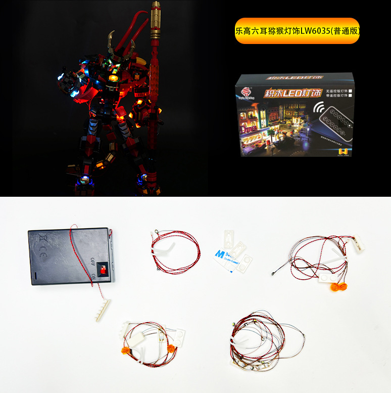 레고 빌딩 블록과 호환되는 LP 빌딩 블록 조명 Wukong Mech 212207 6 귀 원숭이 조립 LED 원격 제어 조명스토어 가기