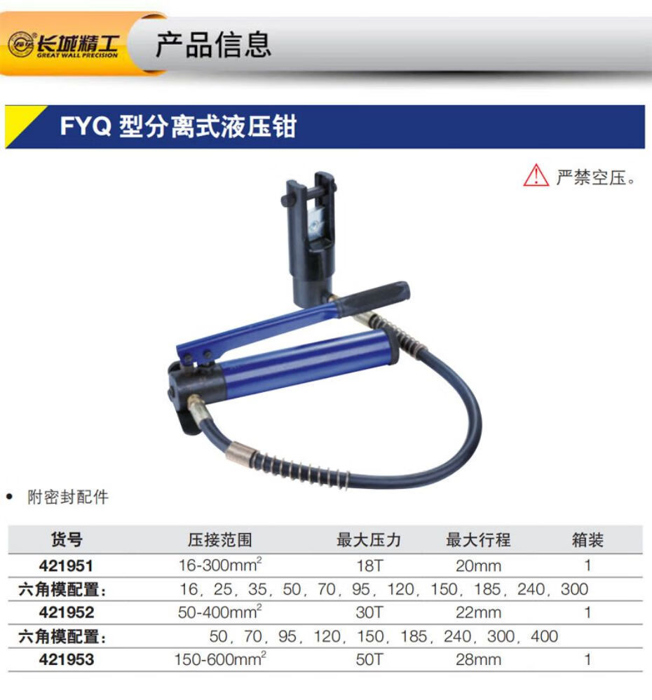 만리장성 유압 클램프 FYQ 유형 별도의 유압 클램프 16-300mm2 탄소강