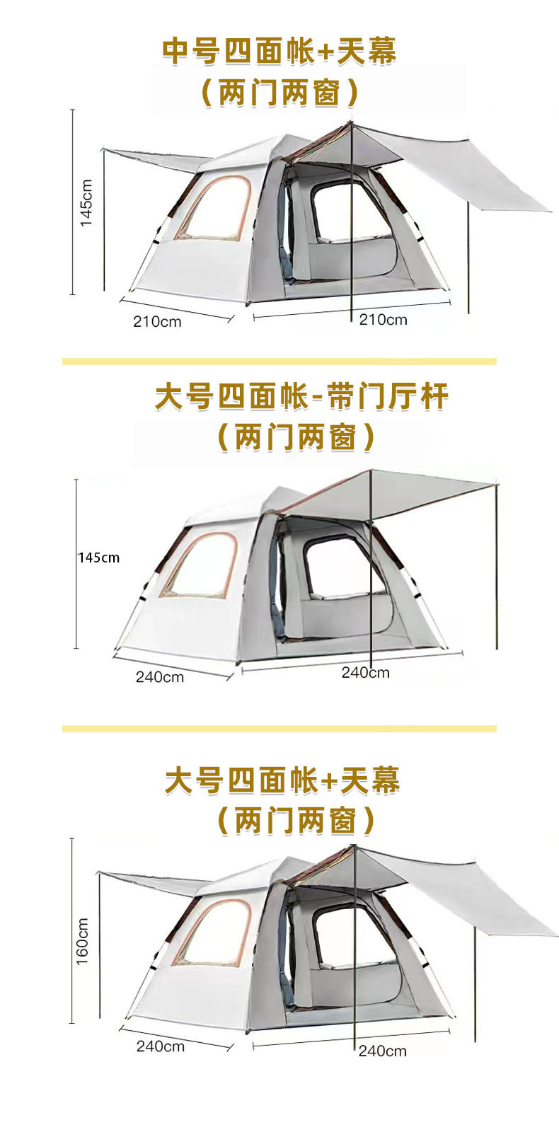 국경 간 텐트 스카이 커튼 2 대 1 야외 캠핑 캠핑 완전 자동 빠른 열기 휴대용 접이식 풀 세트 방비 텐트스토어 가기