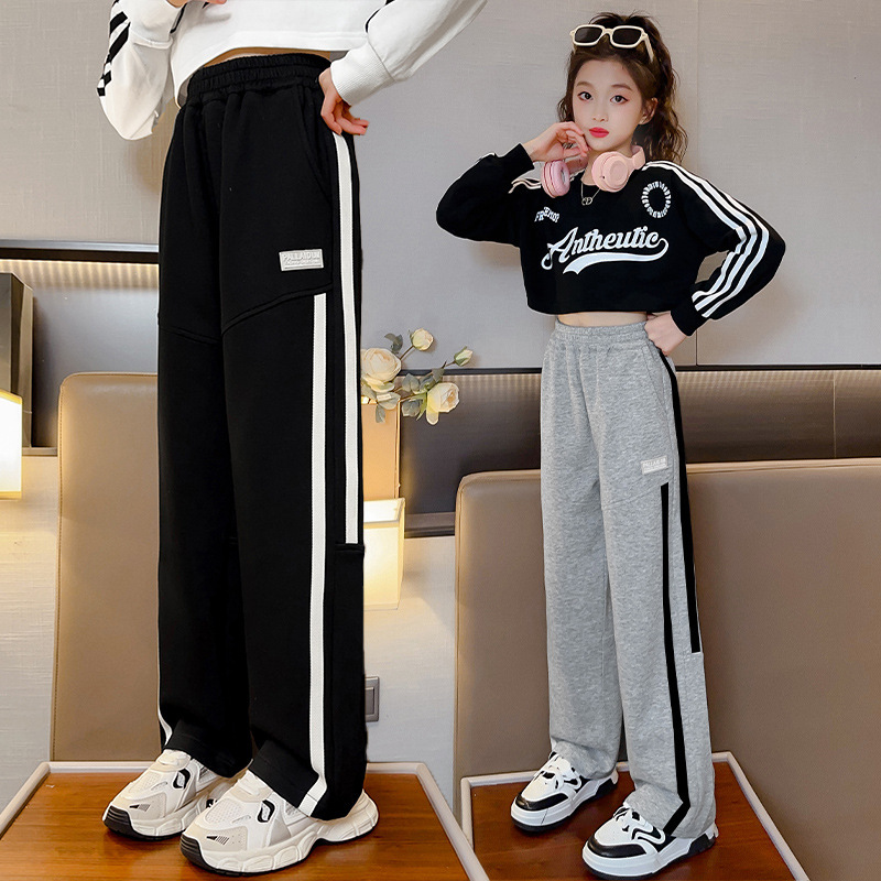 소녀 와이드 레그 팬츠 봄 서양식 아우터 착용 봄과 가을 소녀 스트레이트 팬츠 소녀 바지 어린이 봄 스웨트 팬츠 코튼스토어 가기