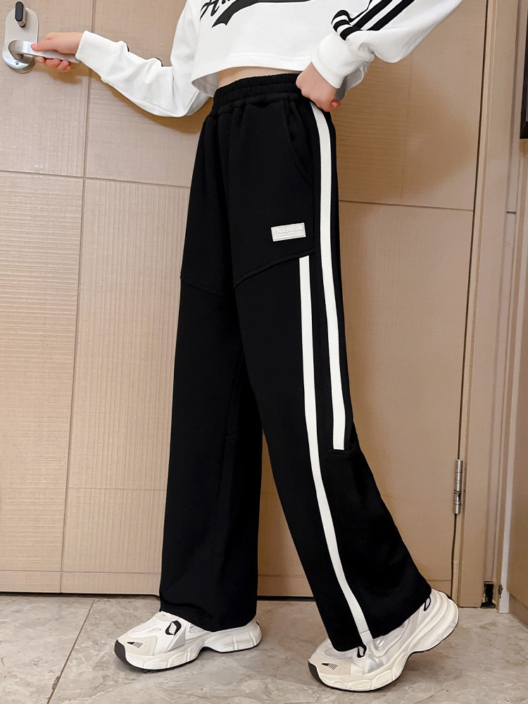 소녀 와이드 레그 팬츠 봄 서양식 아우터 착용 봄과 가을 소녀 스트레이트 팬츠 소녀 바지 어린이 봄 스웨트 팬츠 코튼
