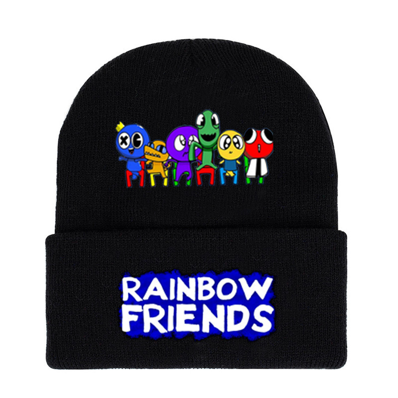 무지개 친구 무지개 친구 검은 니트 모자 만화 인쇄 따뜻한 컬링 가을과 겨울 울 모자