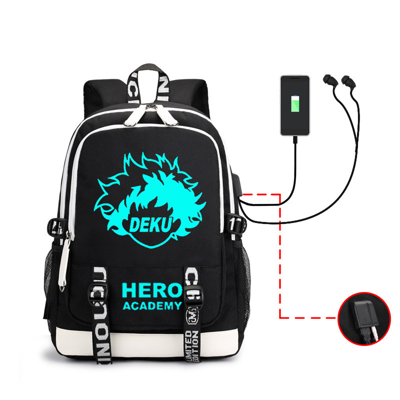 내 영웅 아카데미 아마존 새로운 빛나는 배낭 애니메이션 주변 USB 충전 헤드셋 책가방스토어 가기