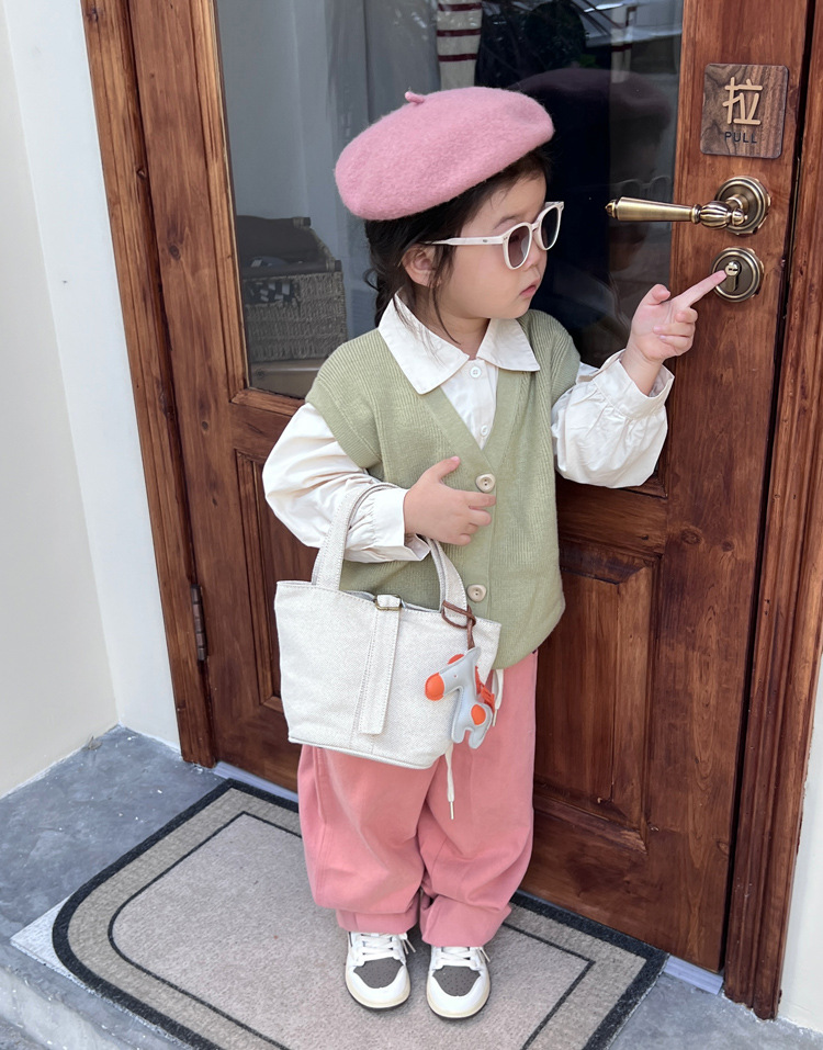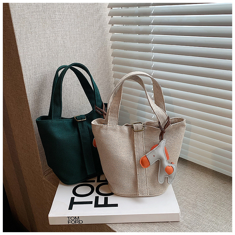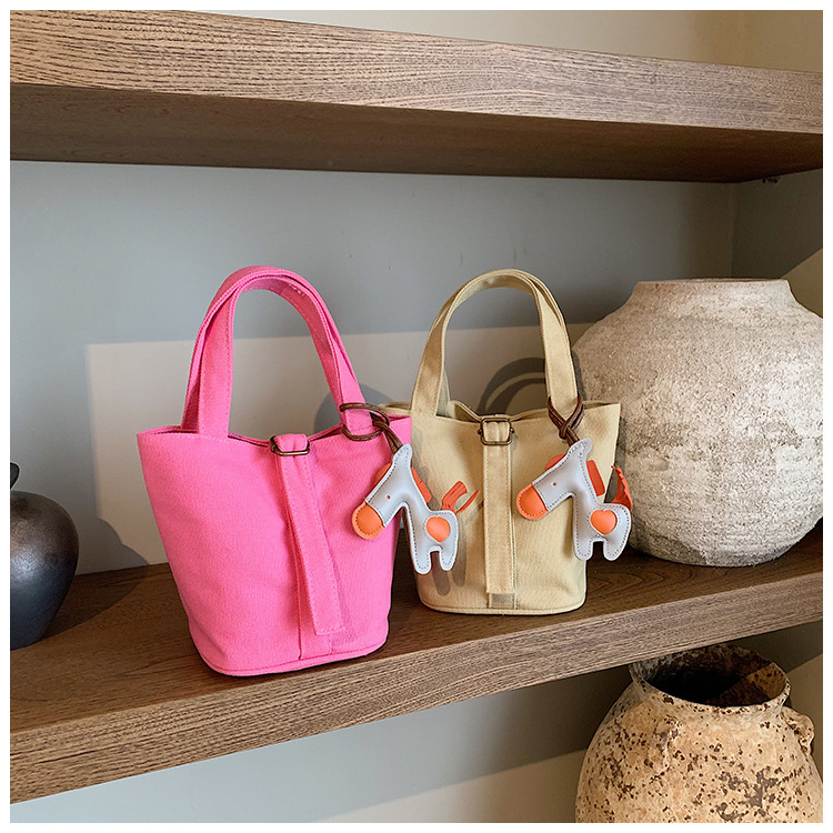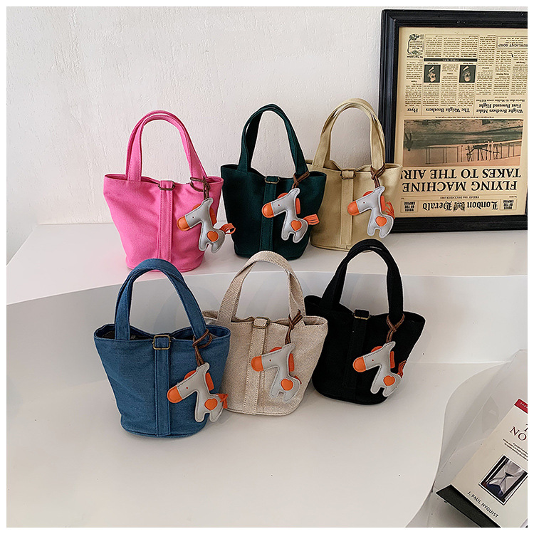 어린이 가방 봄과 여름 새로운 한국식 캔버스 야채 바구니 가방 소녀의 손을 들고 쇼핑백 버킷 백