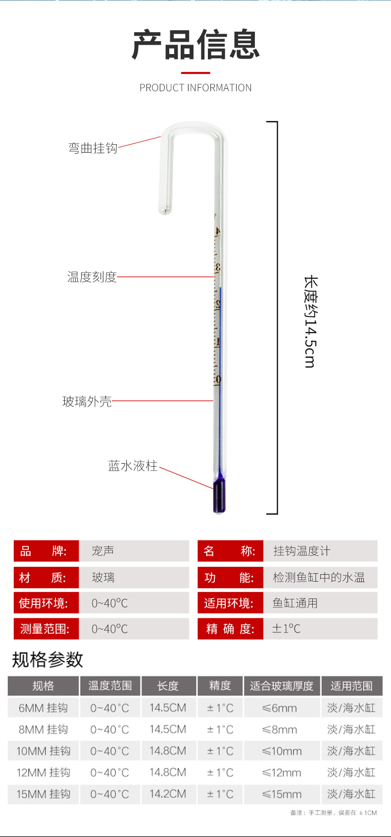 물고기 탱크 후크 온도계 물고기 사육 수족관 벽걸이 형 목발 스틱 유리 온도계를 위한 높은 정밀도 수온측정기스토어 가기