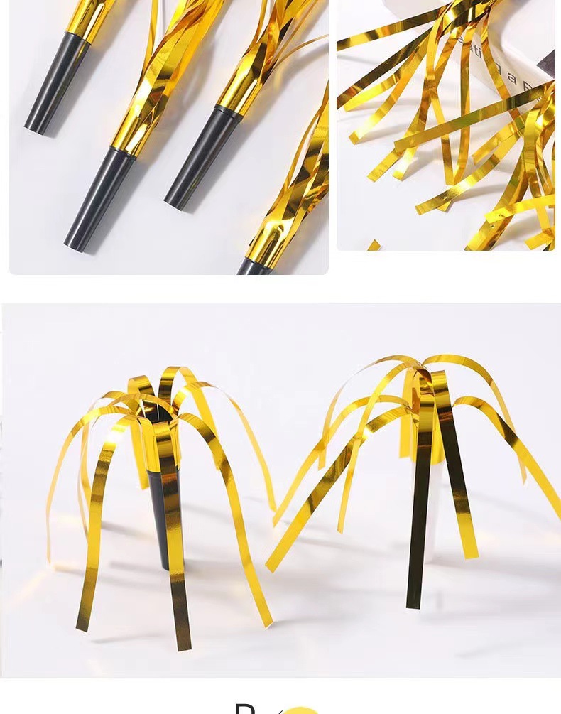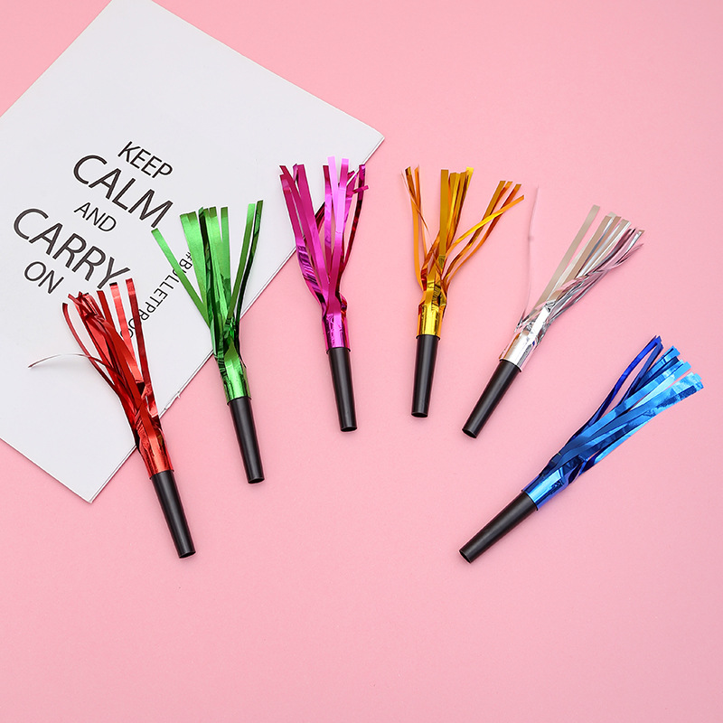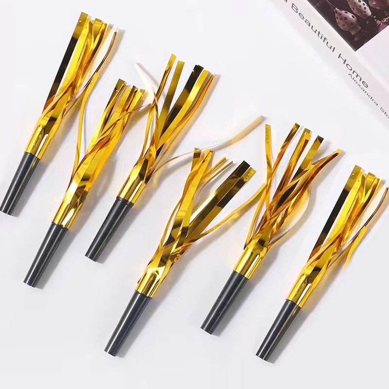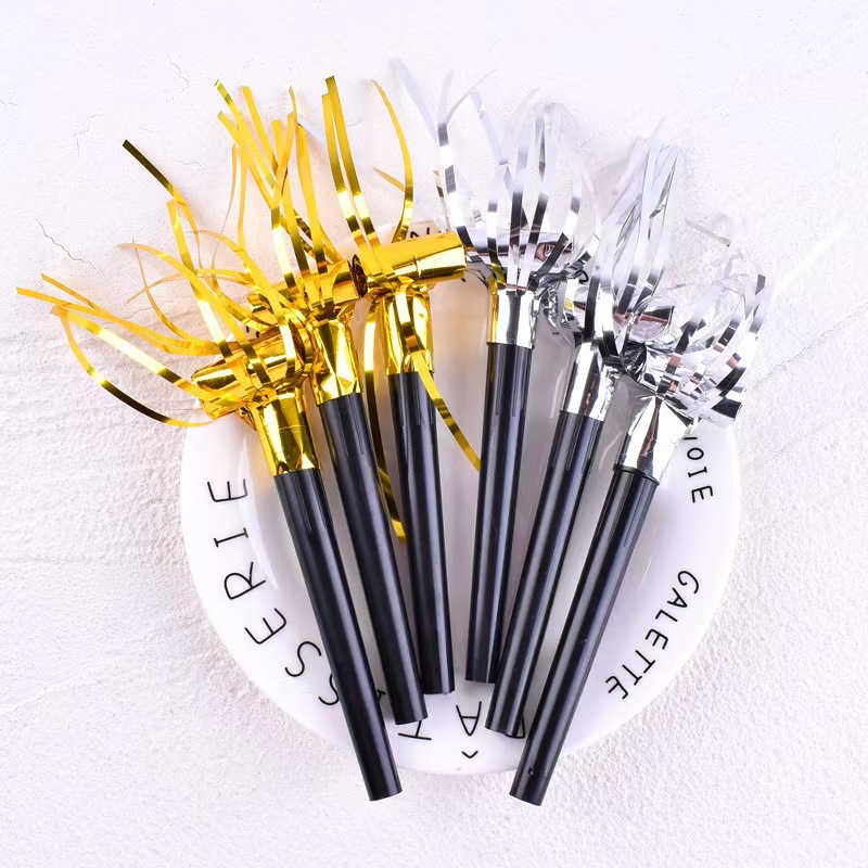 국경을 넘는 플라스틱 호루라기 파티 분위기 연출 소품 신제품 6개입 검정색 튜브 금색 프린지 드래곤 호루라기 파티스토어 가기