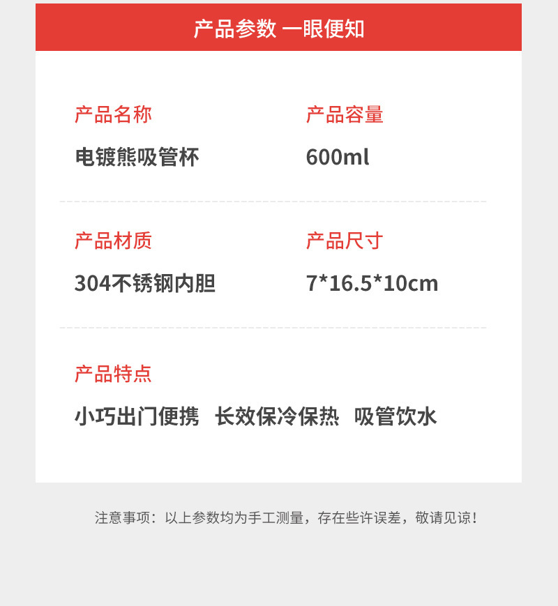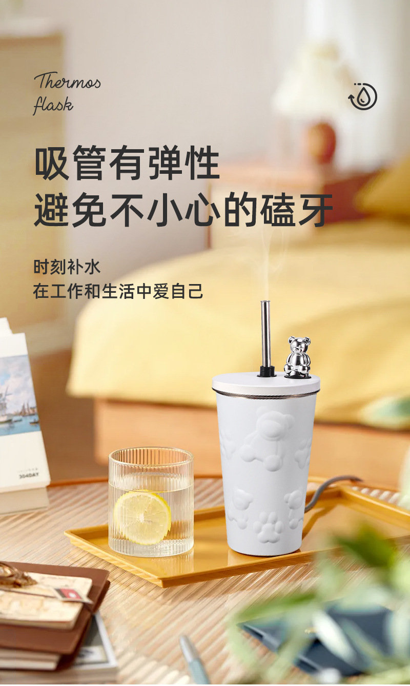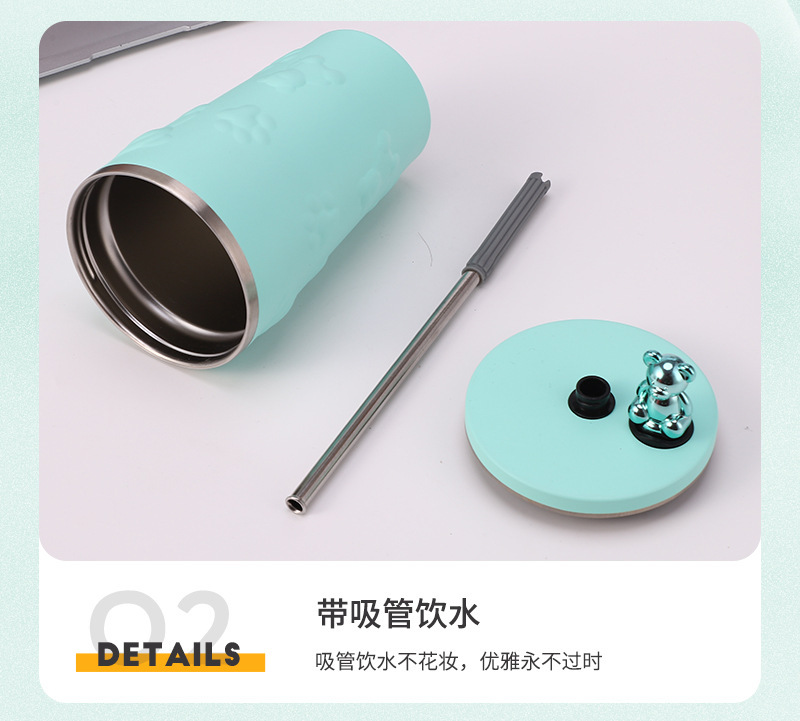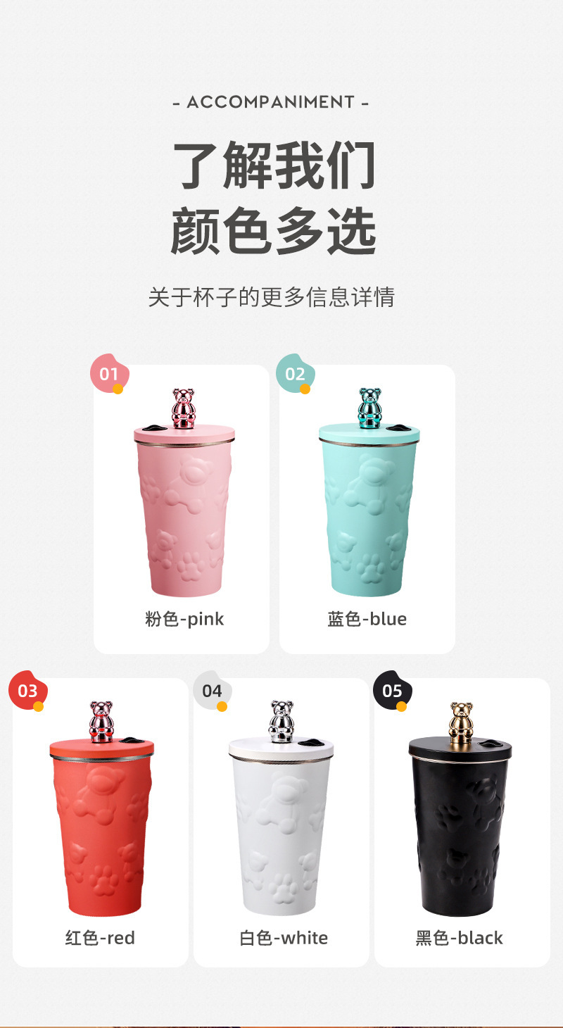 국경 새로운 만화 전기 도금 곰 304 스테인레스 스틸 절연 커피 컵 자동차 휴대용 진공 흡입 컵 선물스토어 가기