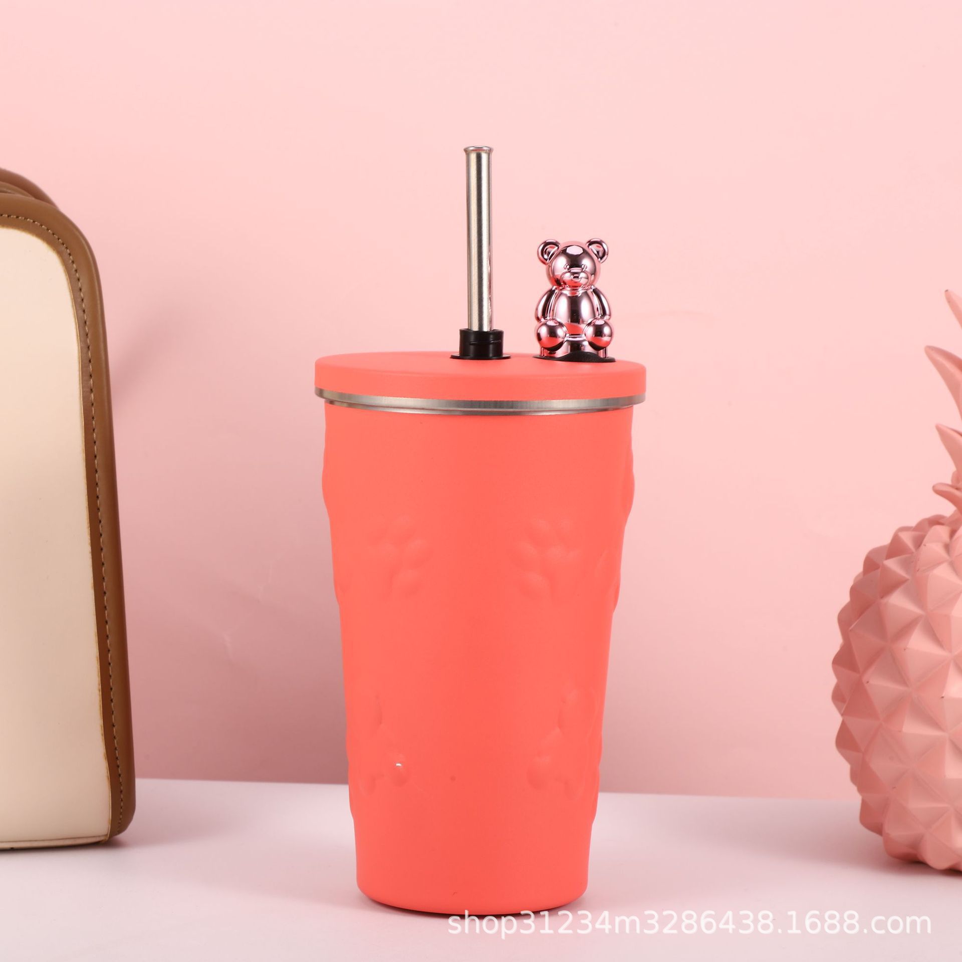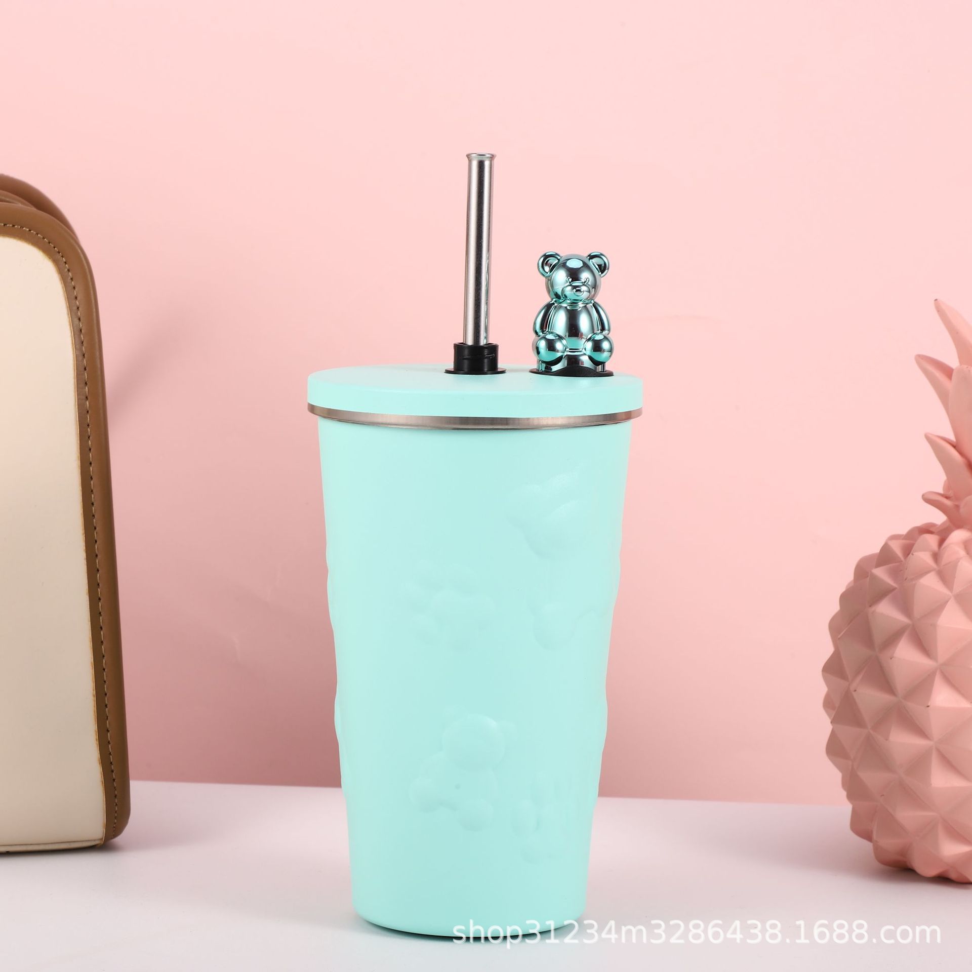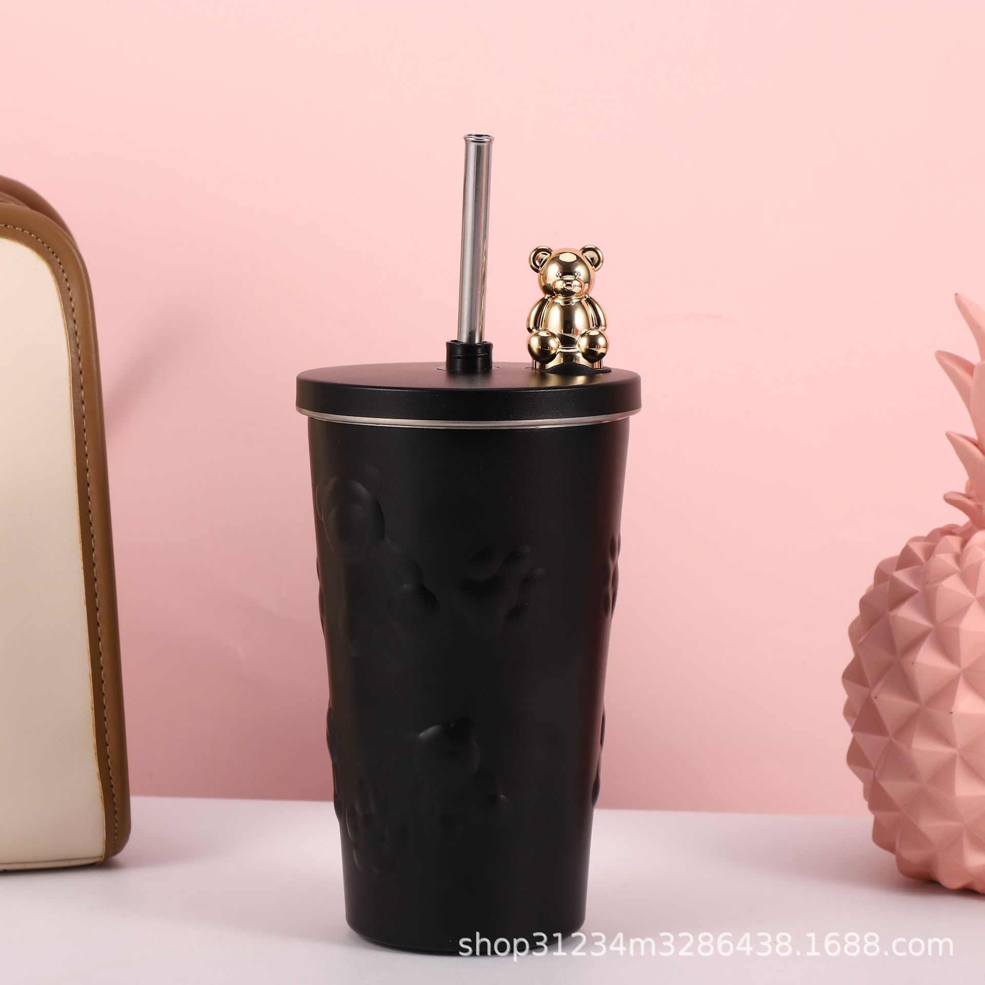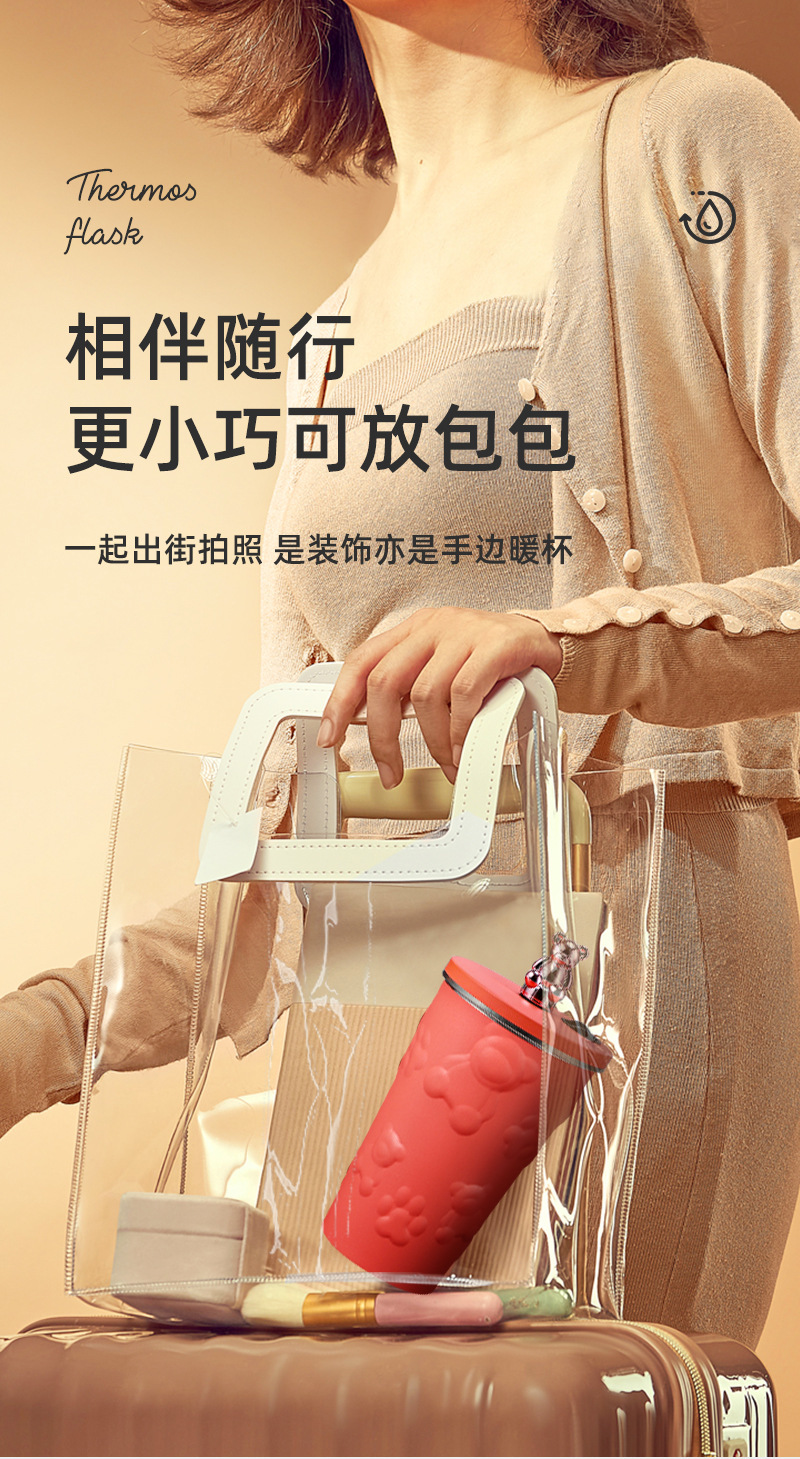 국경 새로운 만화 전기 도금 곰 304 스테인레스 스틸 절연 커피 컵 자동차 휴대용 진공 흡입 컵 선물스토어 가기