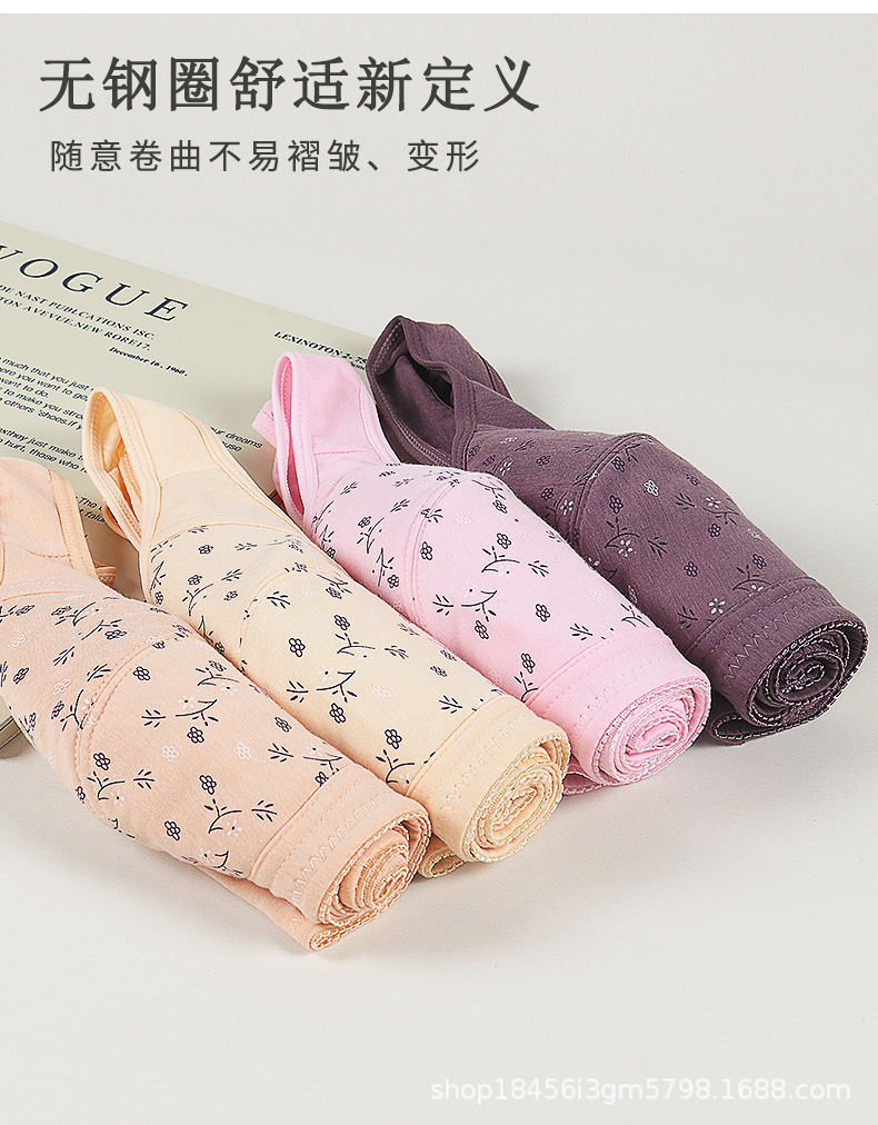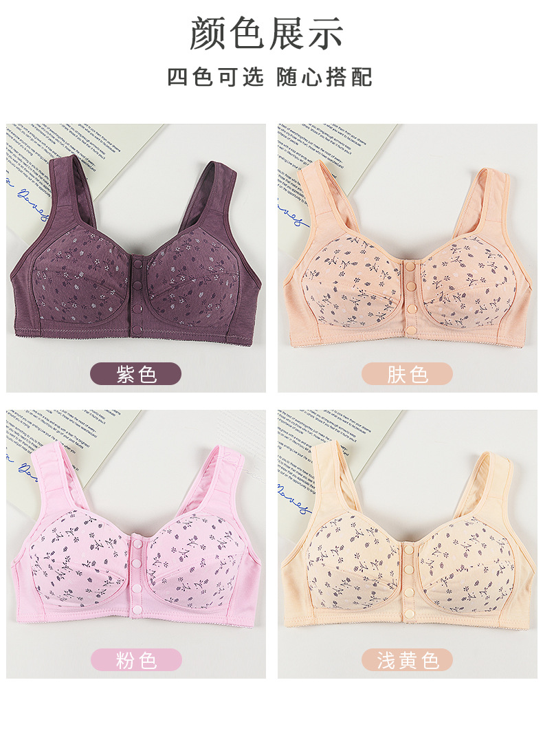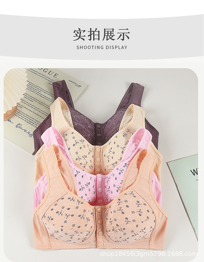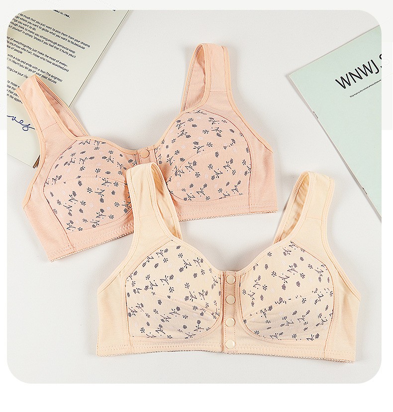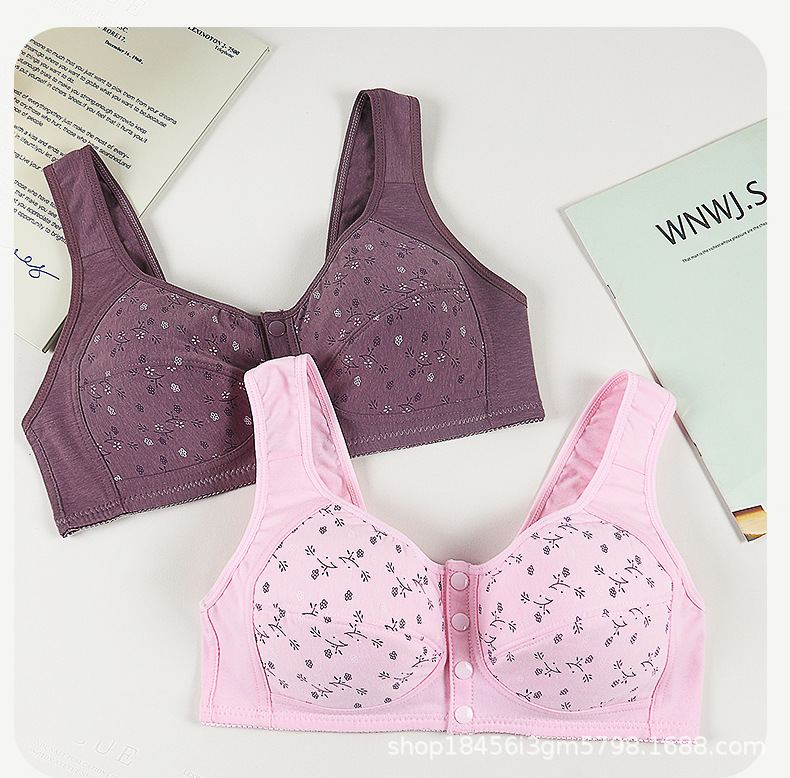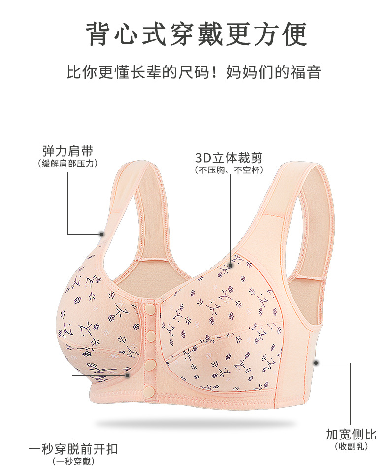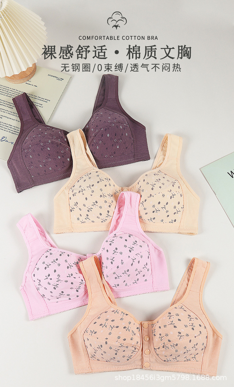 중년 및 노인 어머니 브래지어 스포츠 비 강철 링 인쇄 전면 버클 얇은 속옷 여성면 브라 플러스 사이즈 속옷스토어 가기
