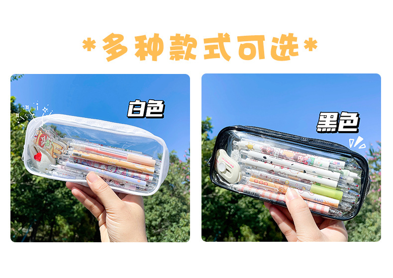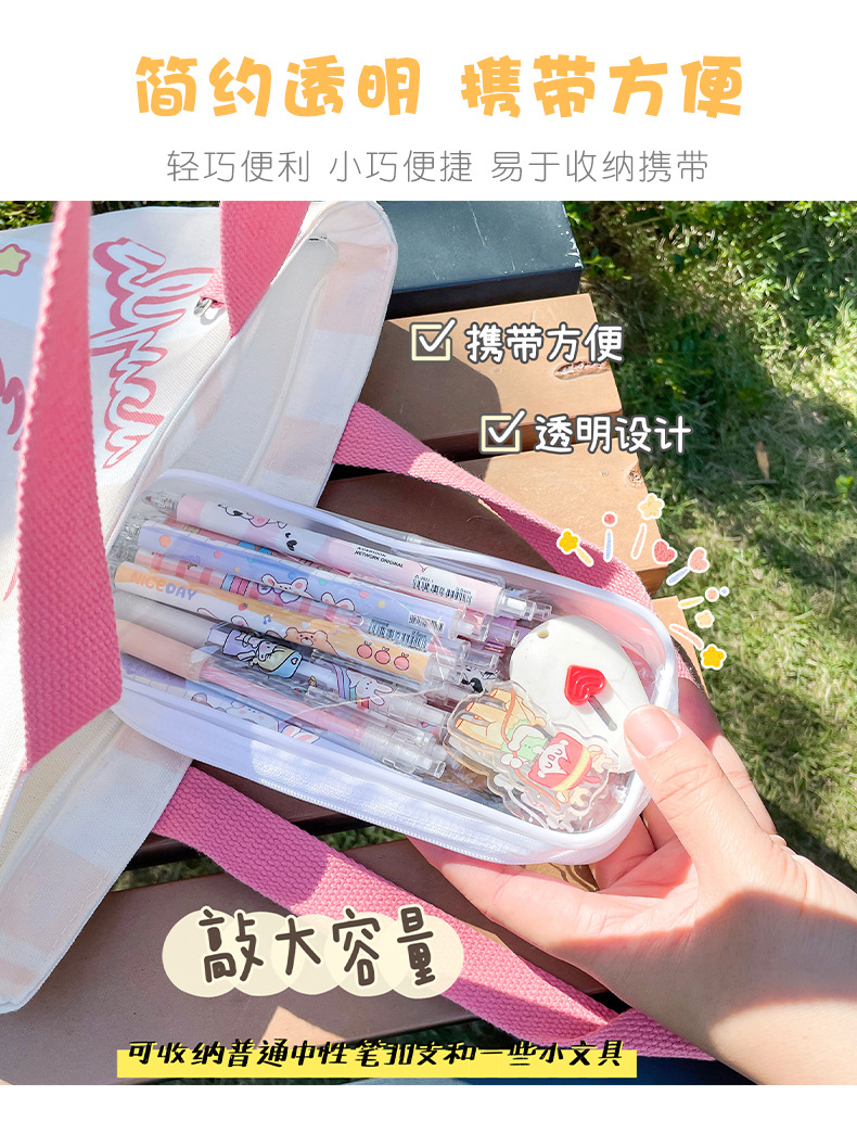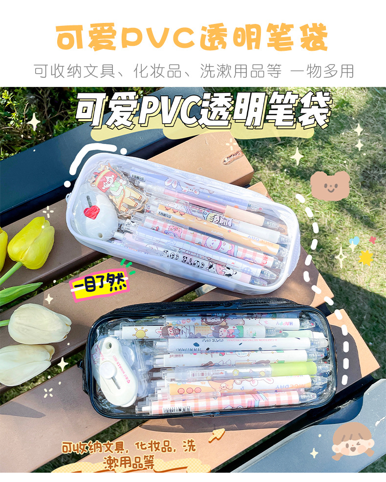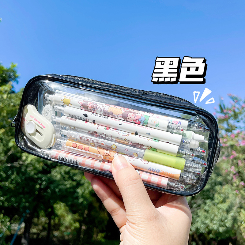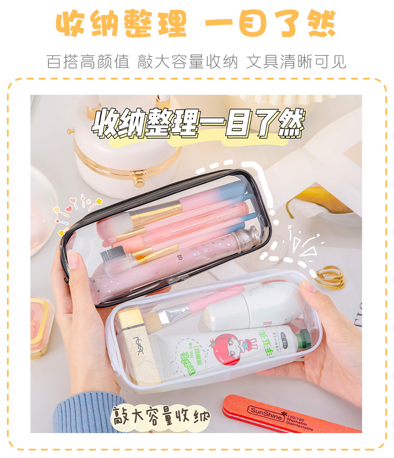 한국어 ins 스타일 투명한 PVC 방수 연필 케이스 학생들을위한 새로운 문구 가방 대용량 소녀 보관 화장품 가방